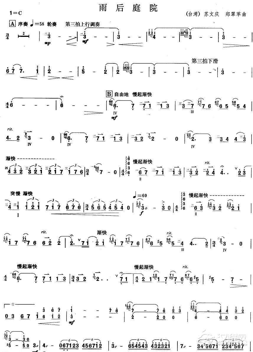 曲谱大全柳琴考级曲谱【柳琴六级:夜深沉】