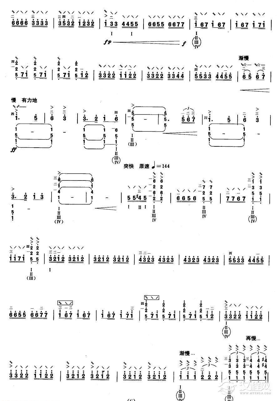曲谱大全柳琴考级曲谱【柳琴六级:雨后庭院】