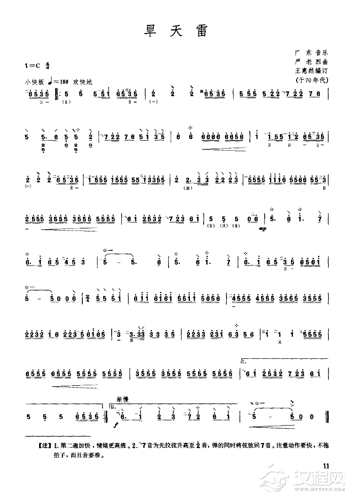 曲谱大全柳琴考级曲谱【柳琴七级:渔歌】