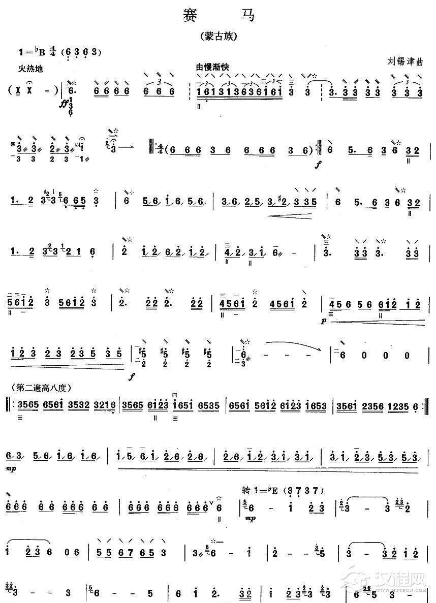 曲谱大全柳琴考级曲谱【柳琴四级:天山骏马】