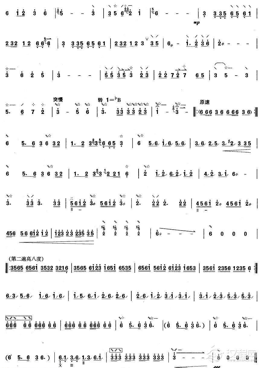 曲谱大全柳琴考级曲谱【柳琴六级:春到沂河】