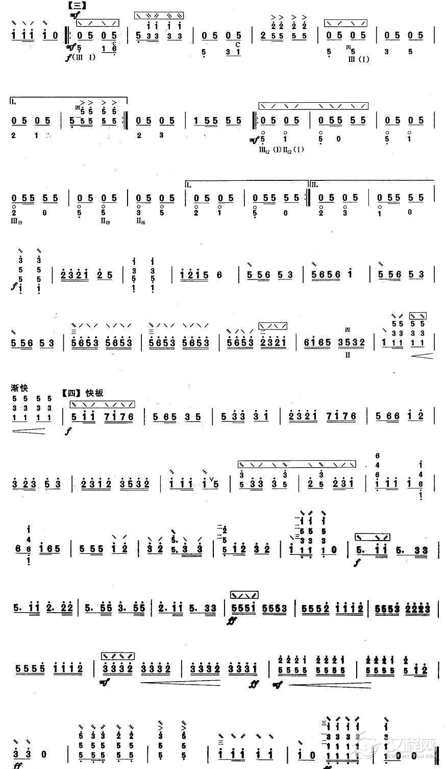 曲谱大全柳琴考级曲谱【柳琴六级:赛马】