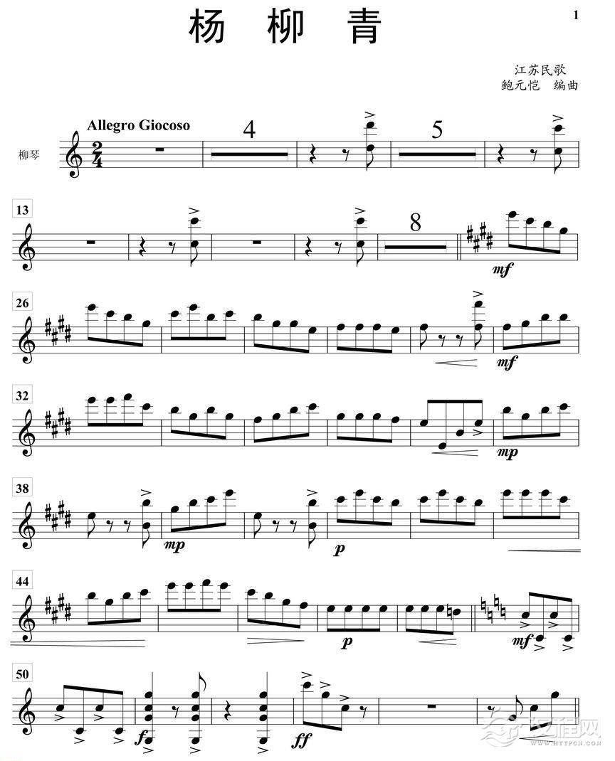 曲谱大全柳琴考级曲谱【柳琴一级:我爱北京天安门】