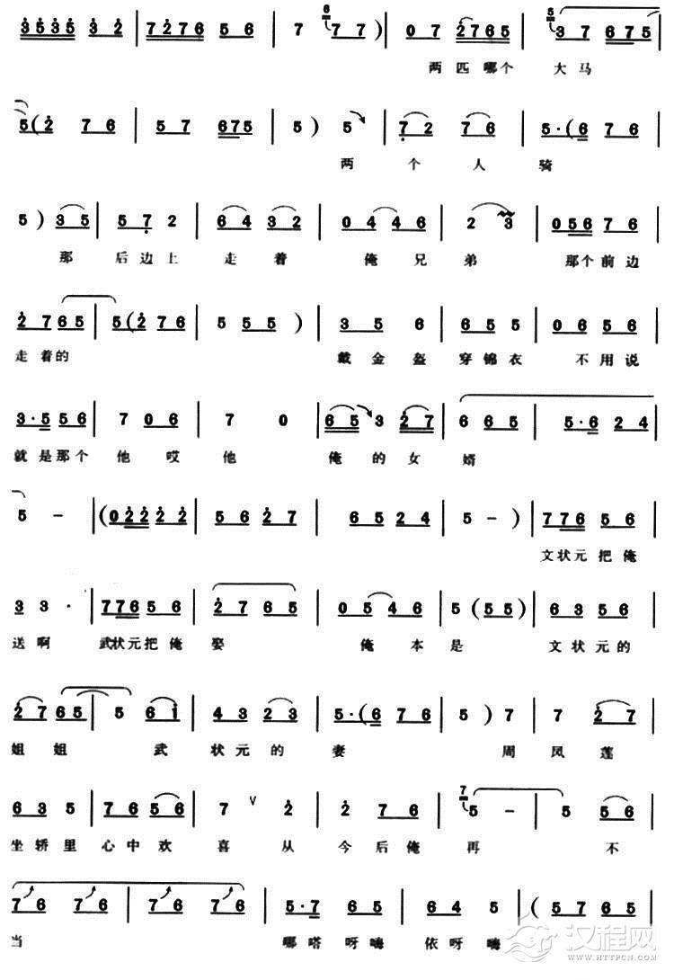 戏曲曲谱《红鬃烈马.大登殿》代战公主与王宝钏对唱(琴谱)