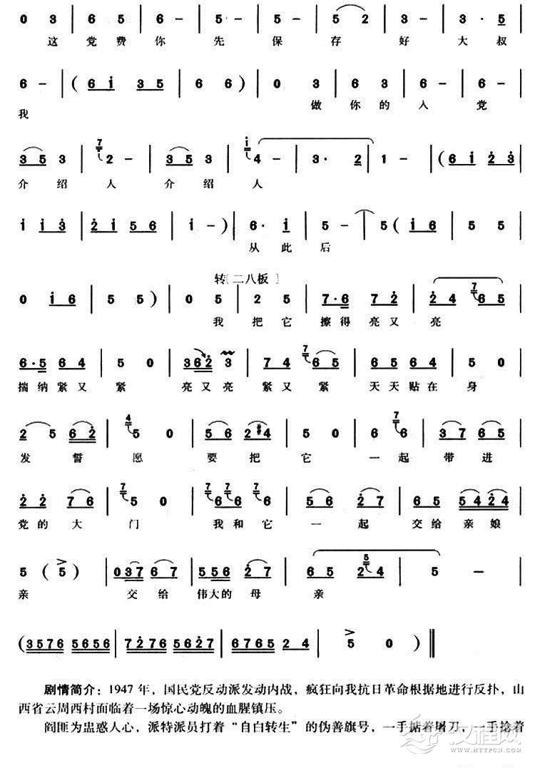 戏曲曲谱当一个问心无愧的共产党员(《村官》李天成唱段)