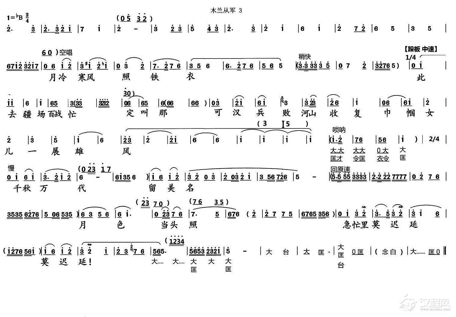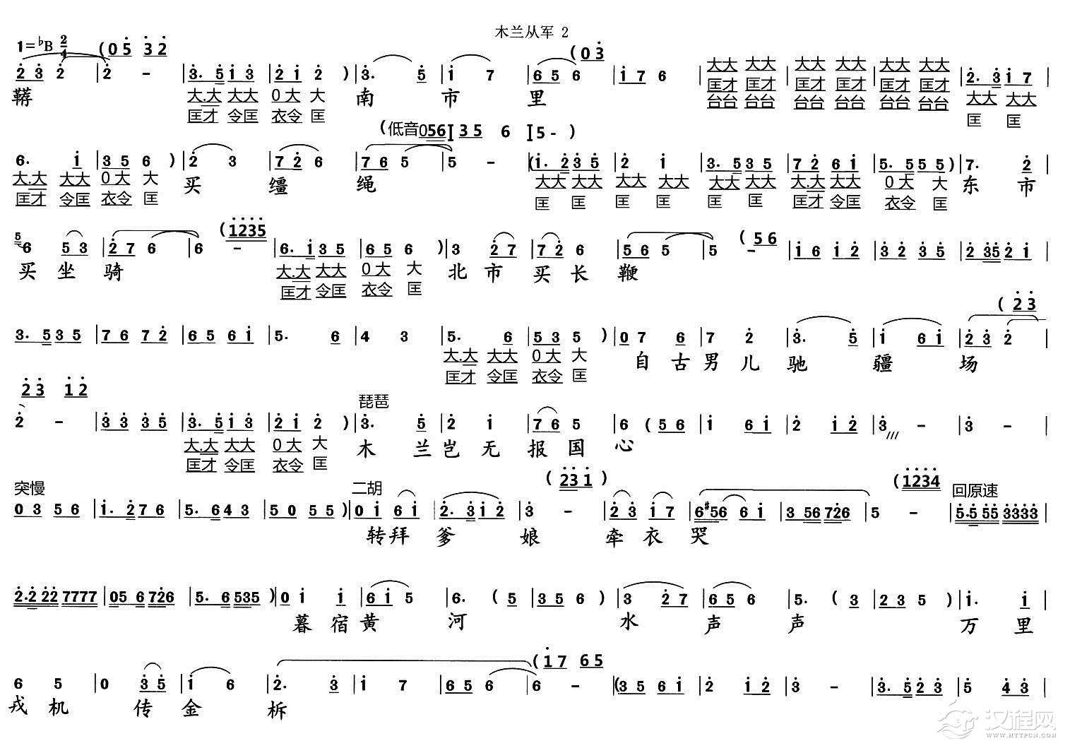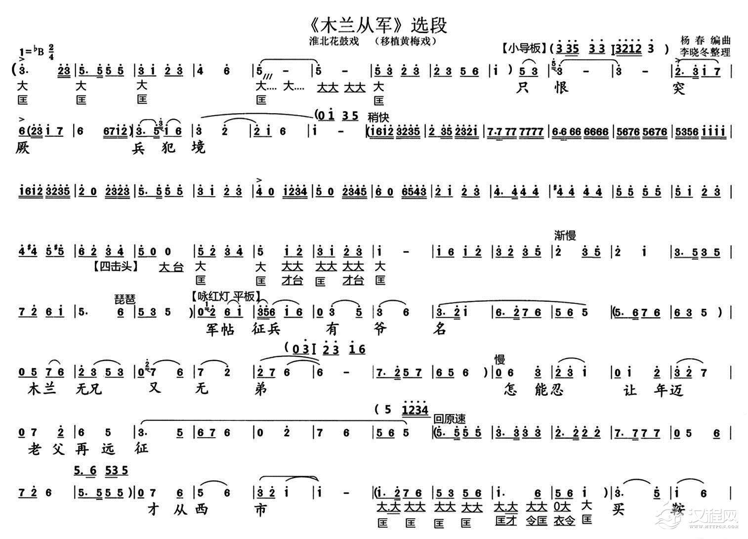 戏曲曲谱我还演巾帼英雄花木兰(《常香玉》常香玉唱段)