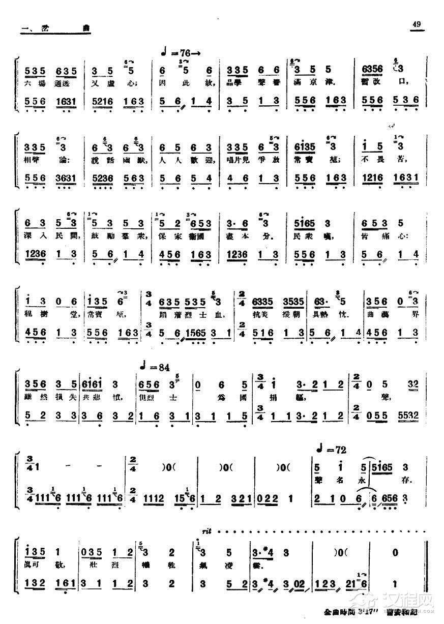 戏曲曲谱[单弦·牌子]满江红