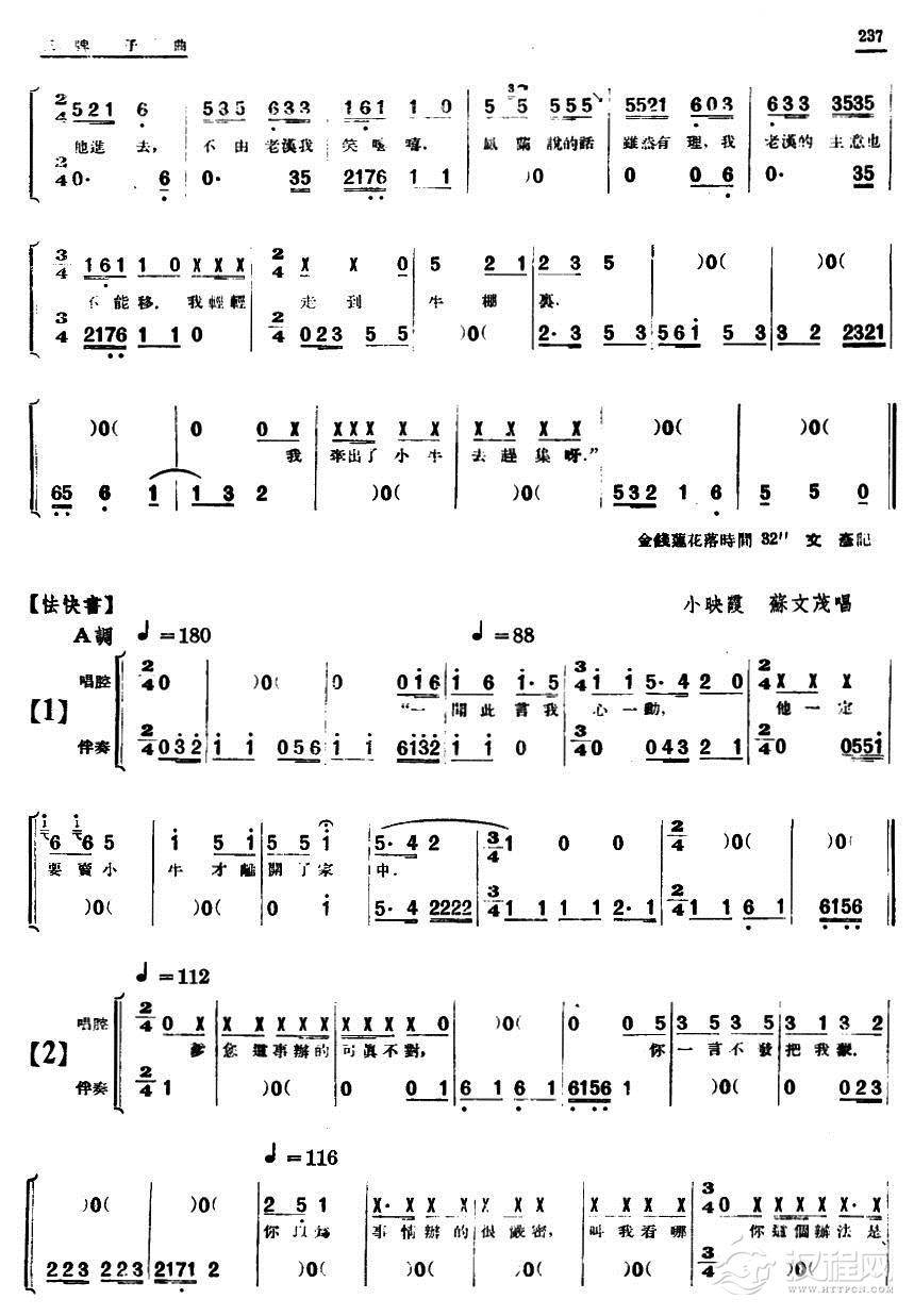 戏曲曲谱花开花放,花花世界(《小辞店》选段)
