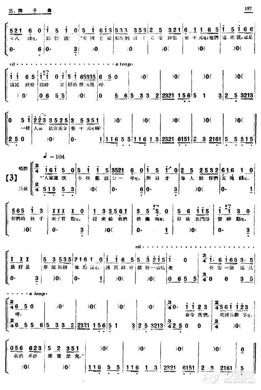 戏曲曲谱[单弦·牌子曲]渡乌江