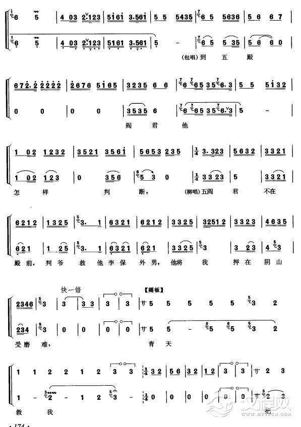 戏曲曲谱[汉剧]闯宫(《秦香莲》秦香莲唱段)