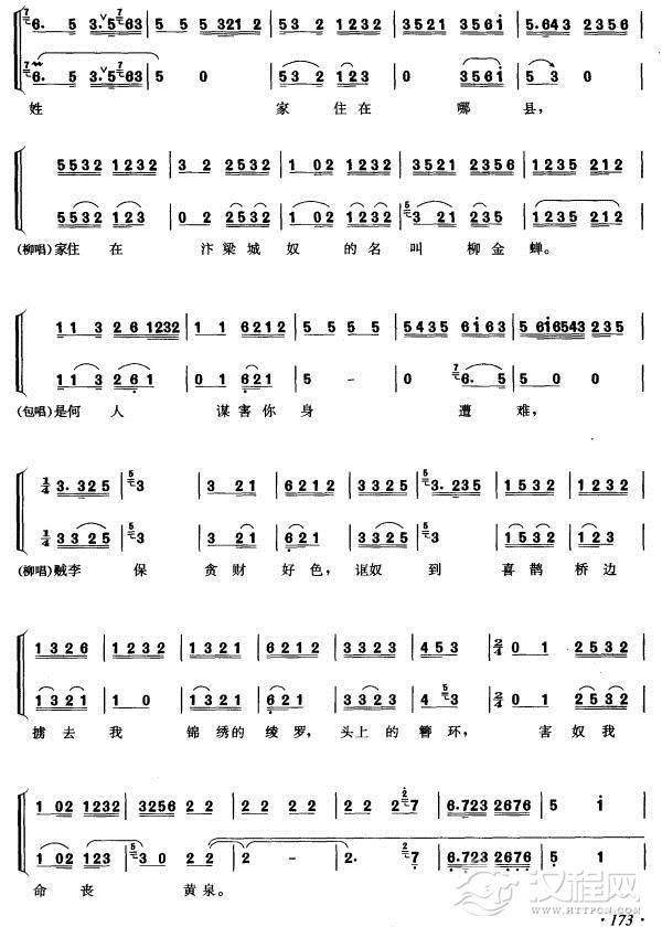 戏曲曲谱[汉剧]铡美(《秦香莲》秦香莲唱段)