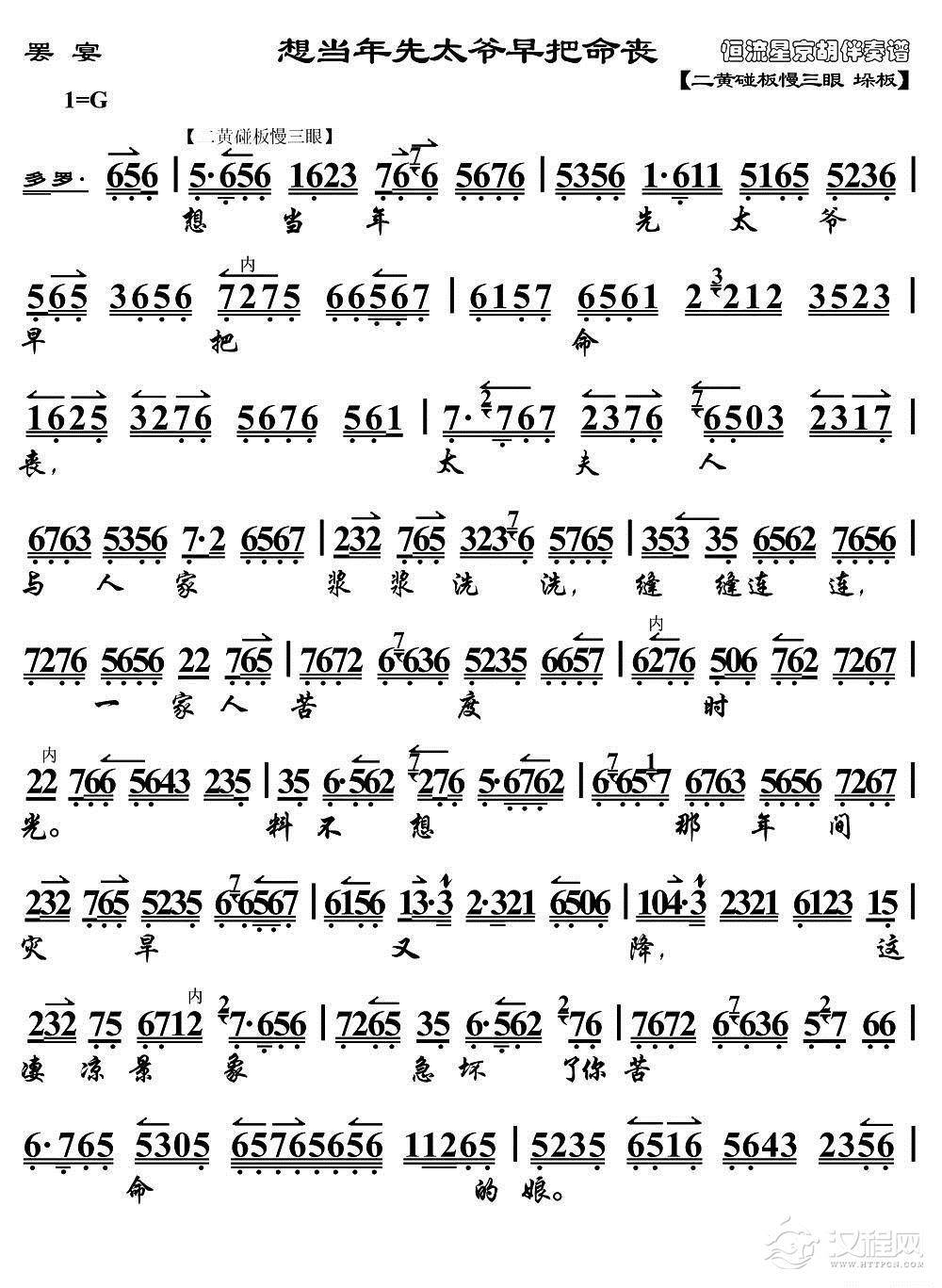 戏曲曲谱[汉剧]闯宫(《秦香莲》秦香莲唱段)
