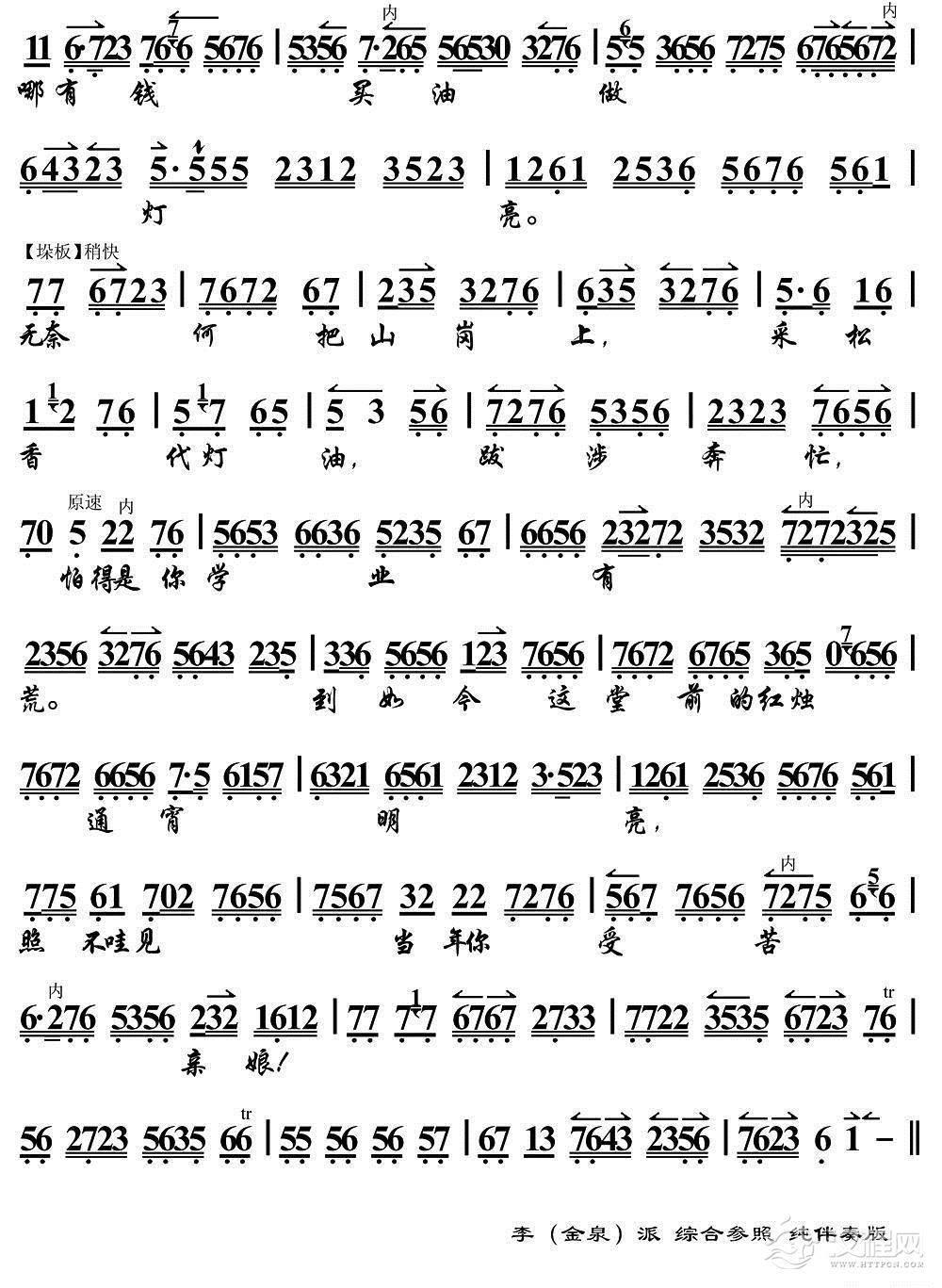 戏曲曲谱[汉剧]祭梅(《二度梅》陈杏元唱段)