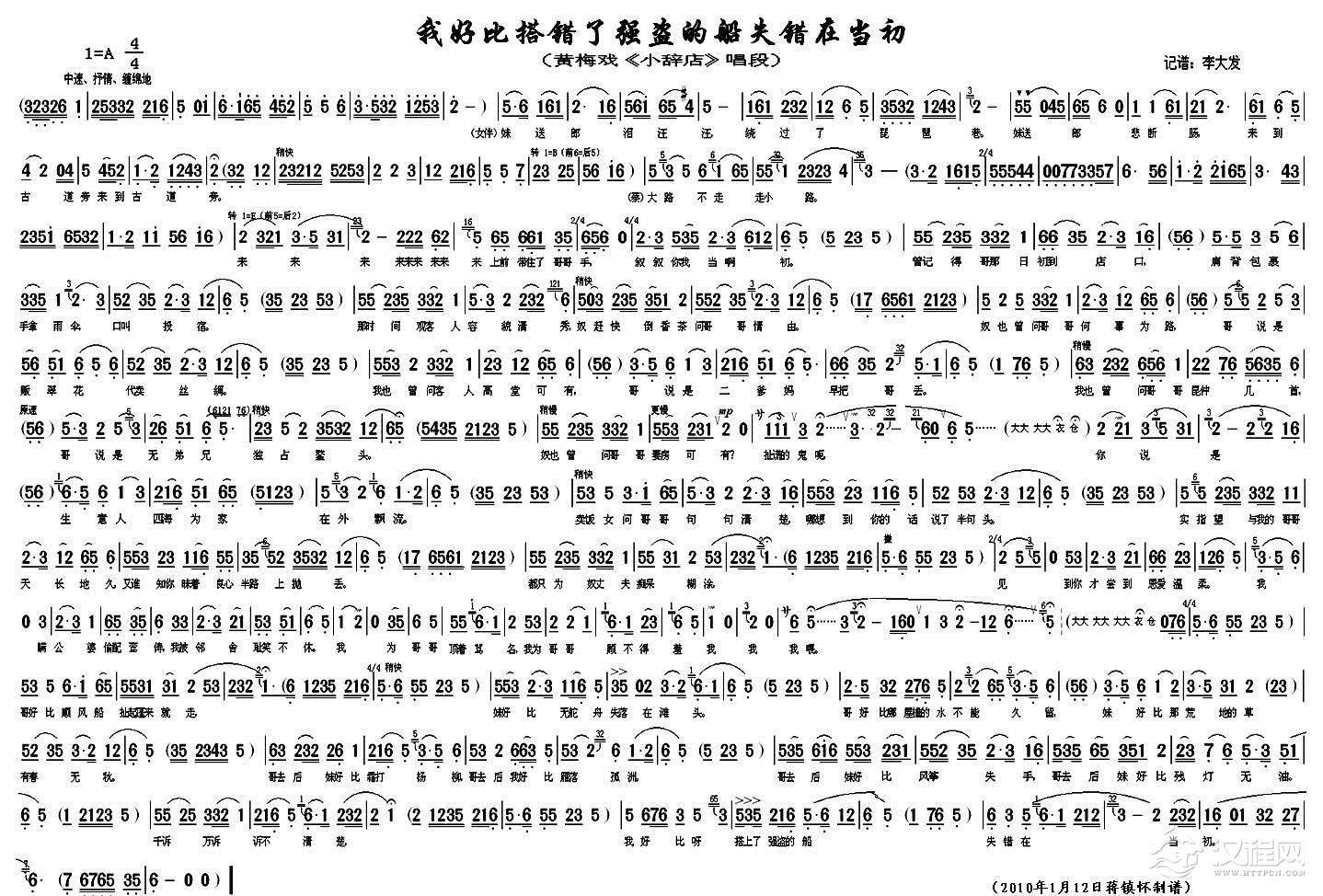 戏曲曲谱到来年春三月哥莫来迟(《小辞店》刘凤英唱段)
