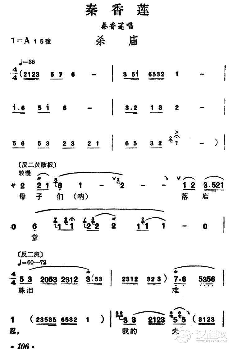 戏曲曲谱[汉剧]闯宫(《秦香莲》秦香莲唱段)