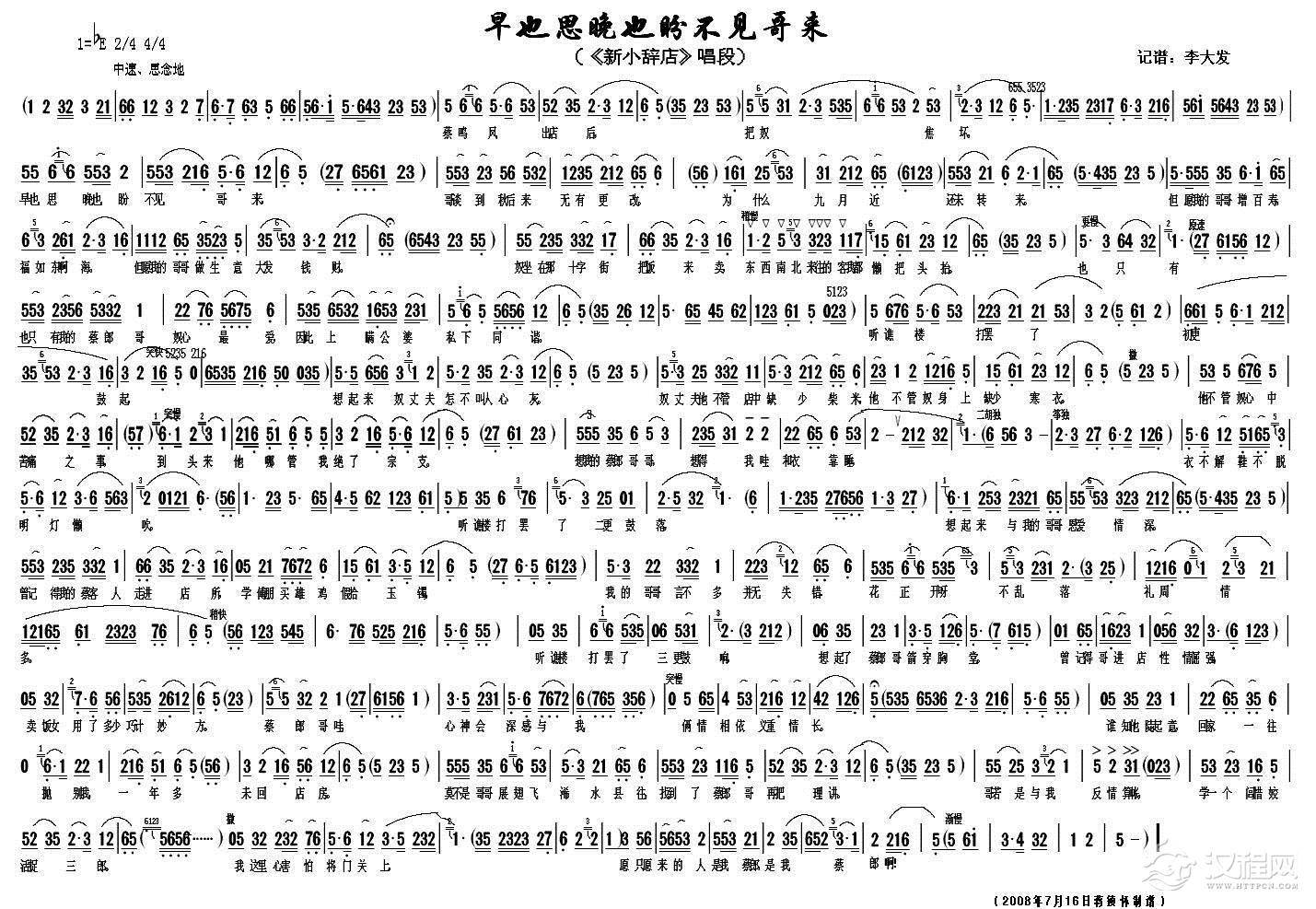 戏曲曲谱近日来辞店姐回家一走(《小辞店》蔡鸣凤唱段)