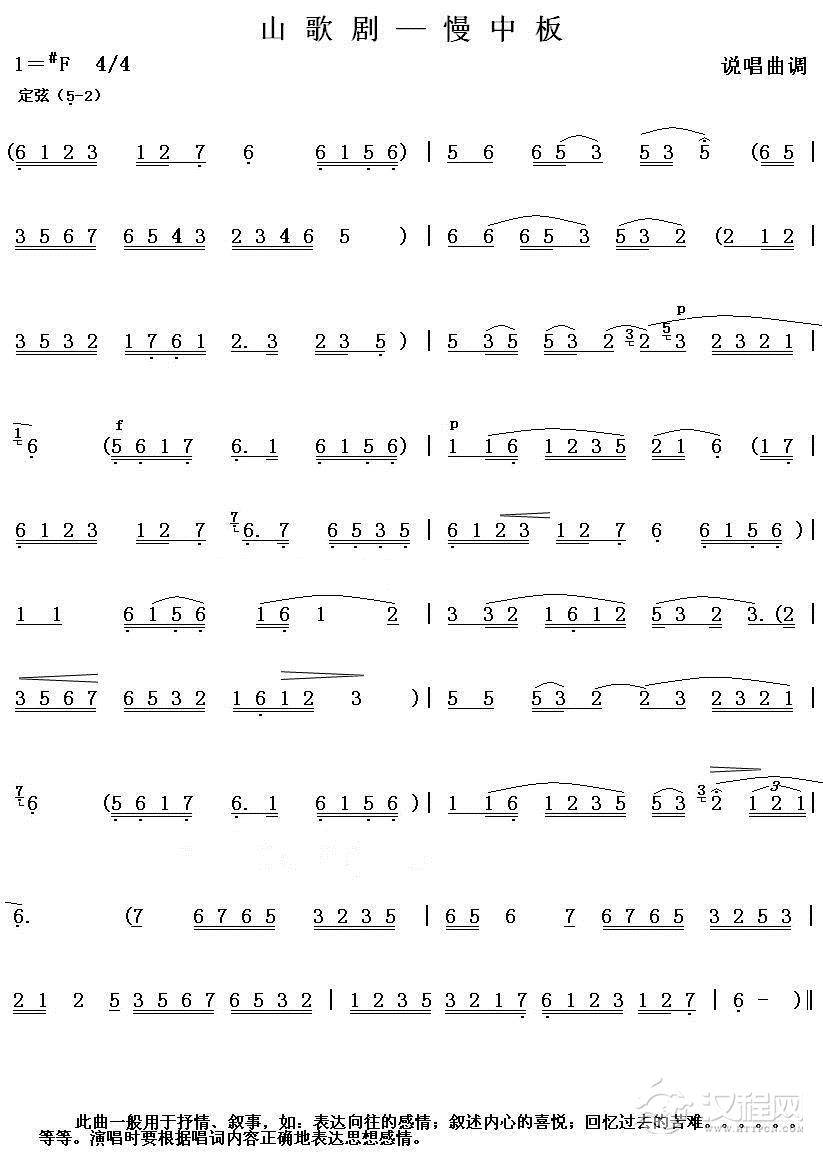 戏曲曲谱山歌剧-正调中板