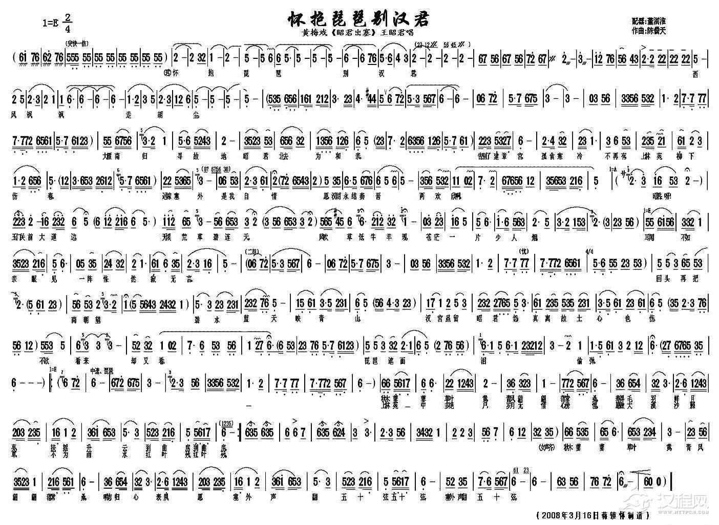 戏曲曲谱伯符阵亡八年整(《大乔与小乔》小乔唱段)