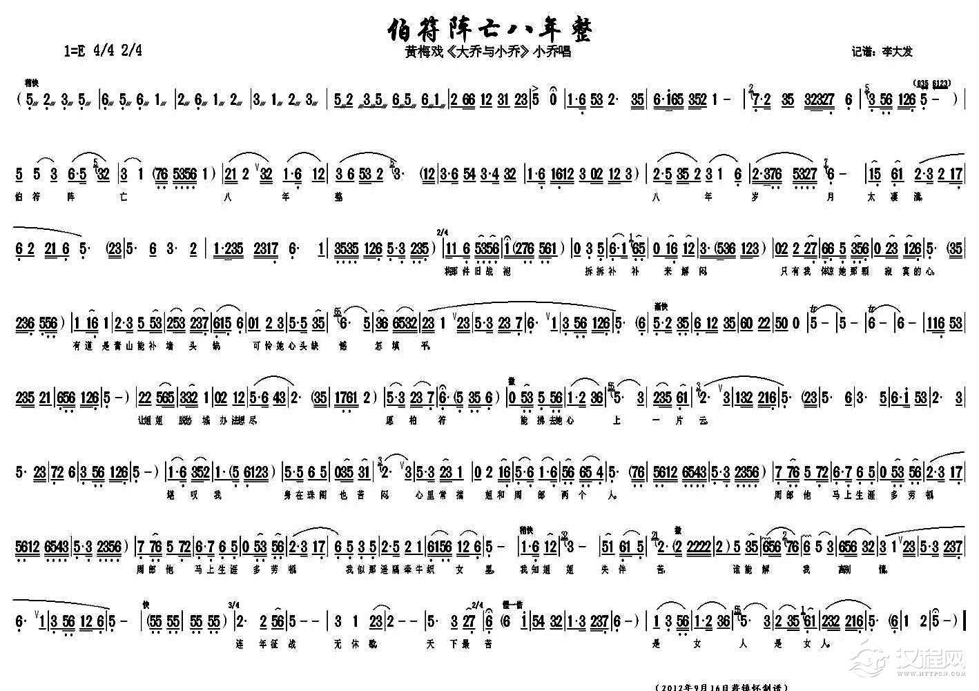 戏曲曲谱编排这红尘游戏调笑我这未亡人(《大乔与小乔》大乔、小乔对唱)