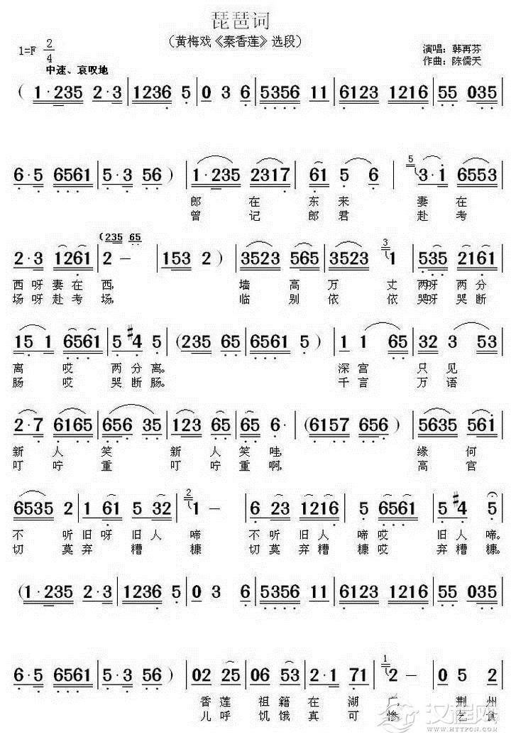戏曲曲谱与我的好鸣凤相伴终身(电视剧《家》对唱)