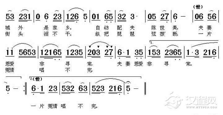 戏曲曲谱一曲新词万缕情(《郑小娇》小娇、中必对唱)