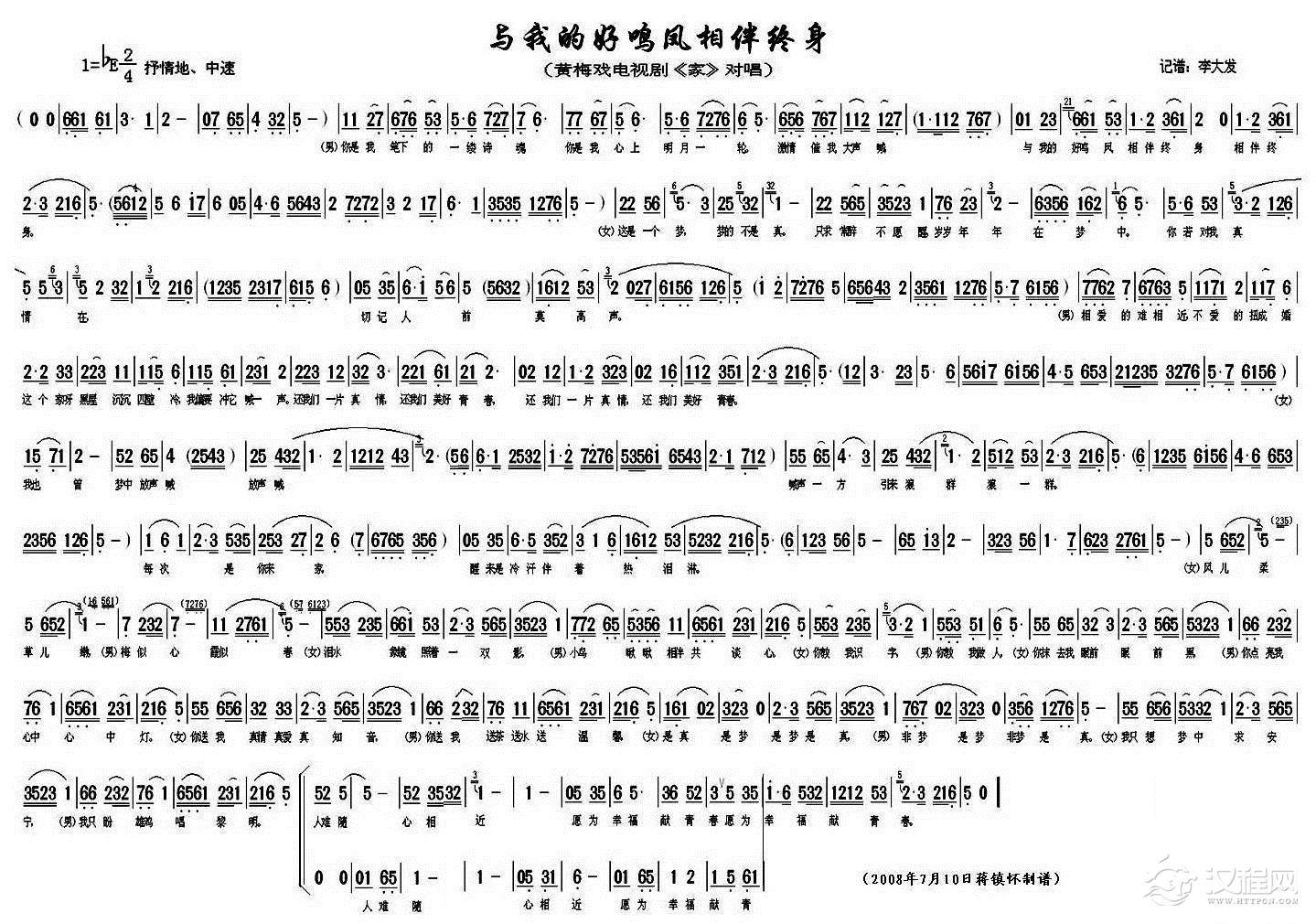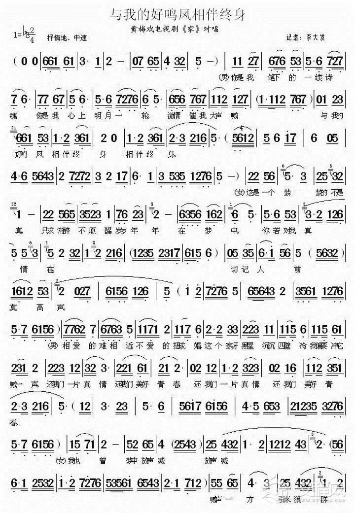 戏曲曲谱你似凤凰我是山鸡(《啼笑因缘》男女对唱)