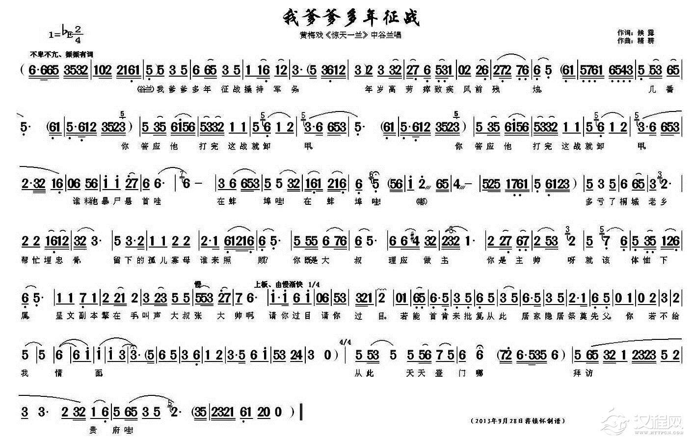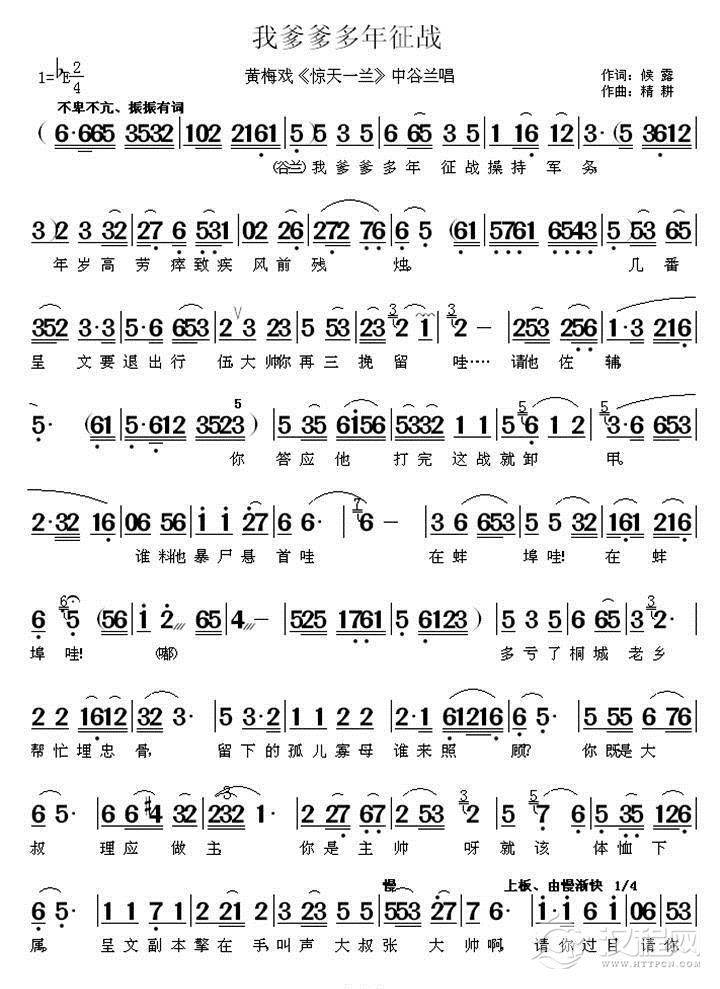 戏曲曲谱我是令尊军中一小兵(《惊天一兰》中靖公唱段)