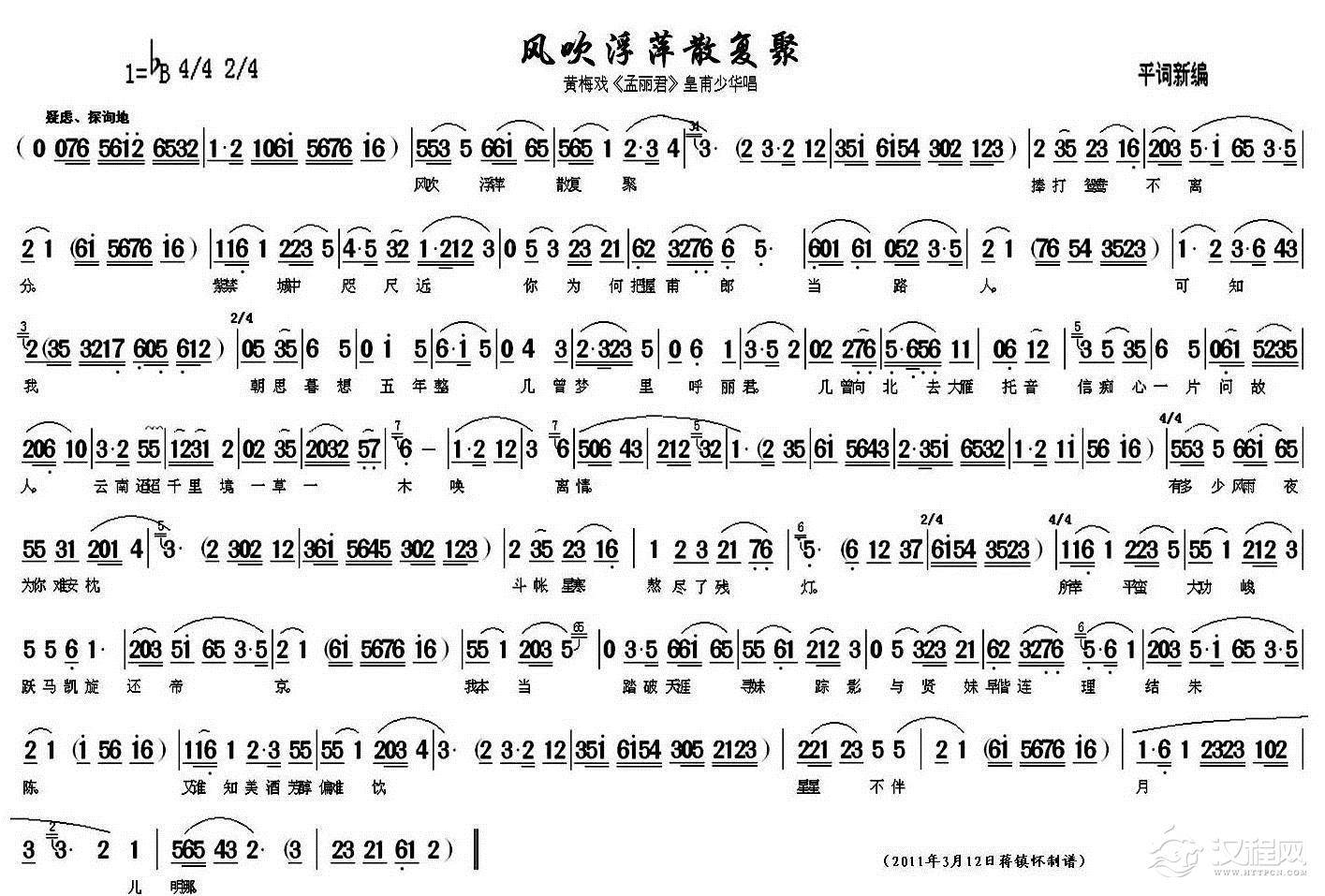 戏曲曲谱感郎君一片深情明如镜(《孟丽君》孟丽君唱段)