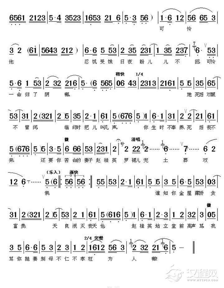 戏曲曲谱忽闻娇儿来监牢(《血冤》素娘唱段)