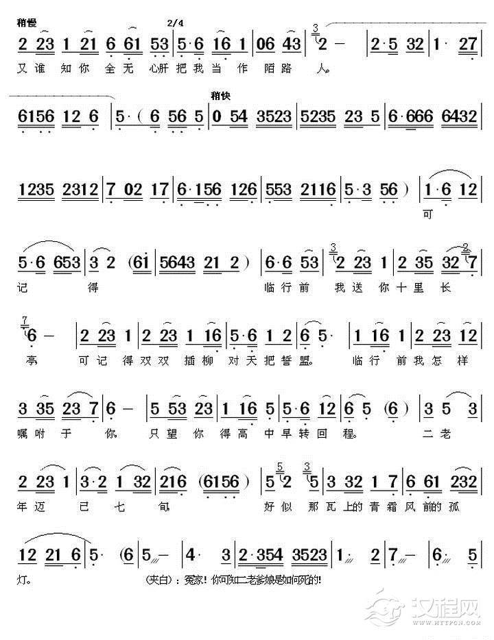 戏曲曲谱手捧着血迹斑斑日月镜(《半边月》唱段)