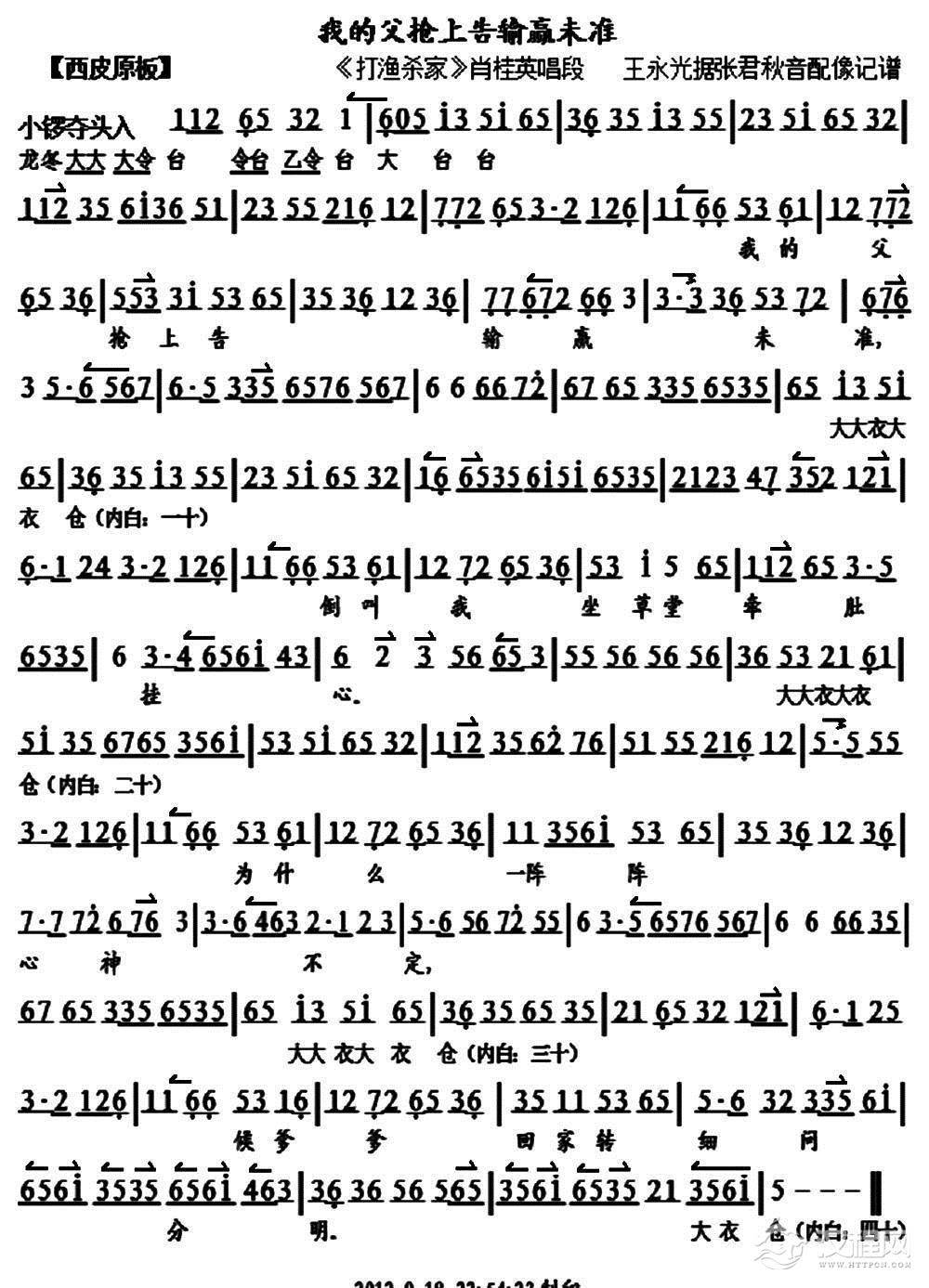 戏曲曲谱老爹爹清晨起前去自首(《打渔杀家》肖桂英唱段、唱腔+伴奏)