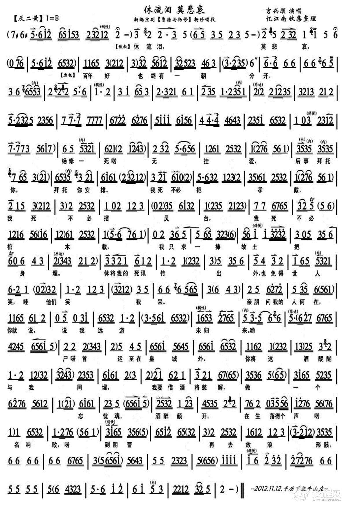 戏曲曲谱恨项羽怀王之约他不守(《鸿门宴》刘邦 张良对唱、琴谱)