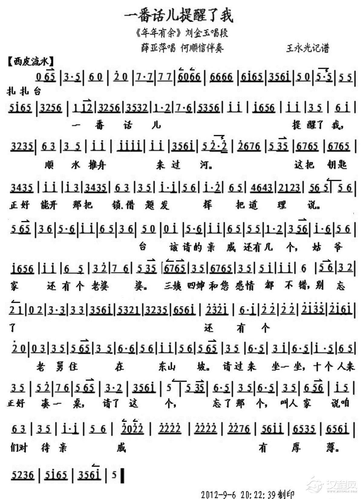 戏曲曲谱恨项羽怀王之约他不守(《鸿门宴》刘邦 张良对唱、琴谱)
