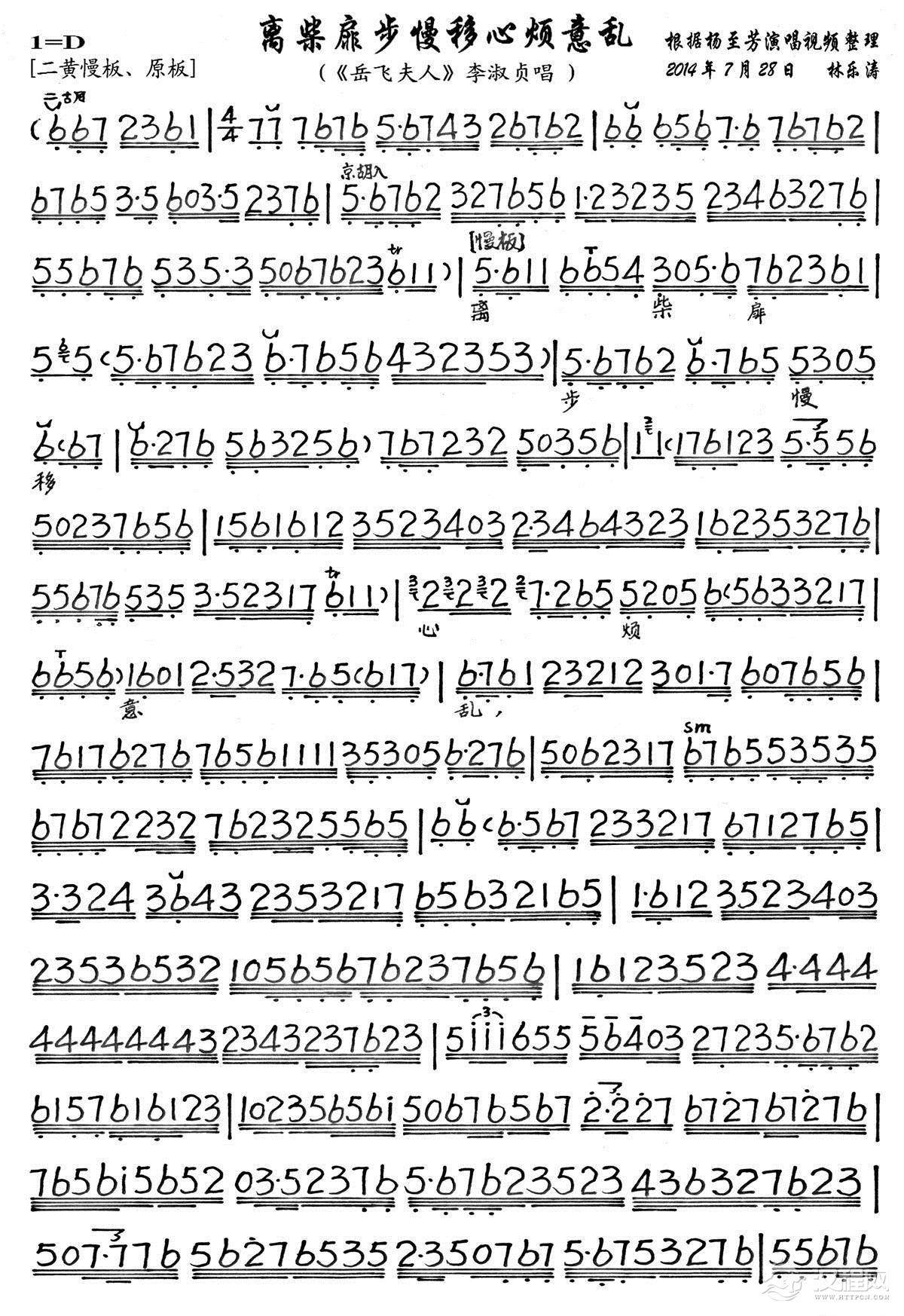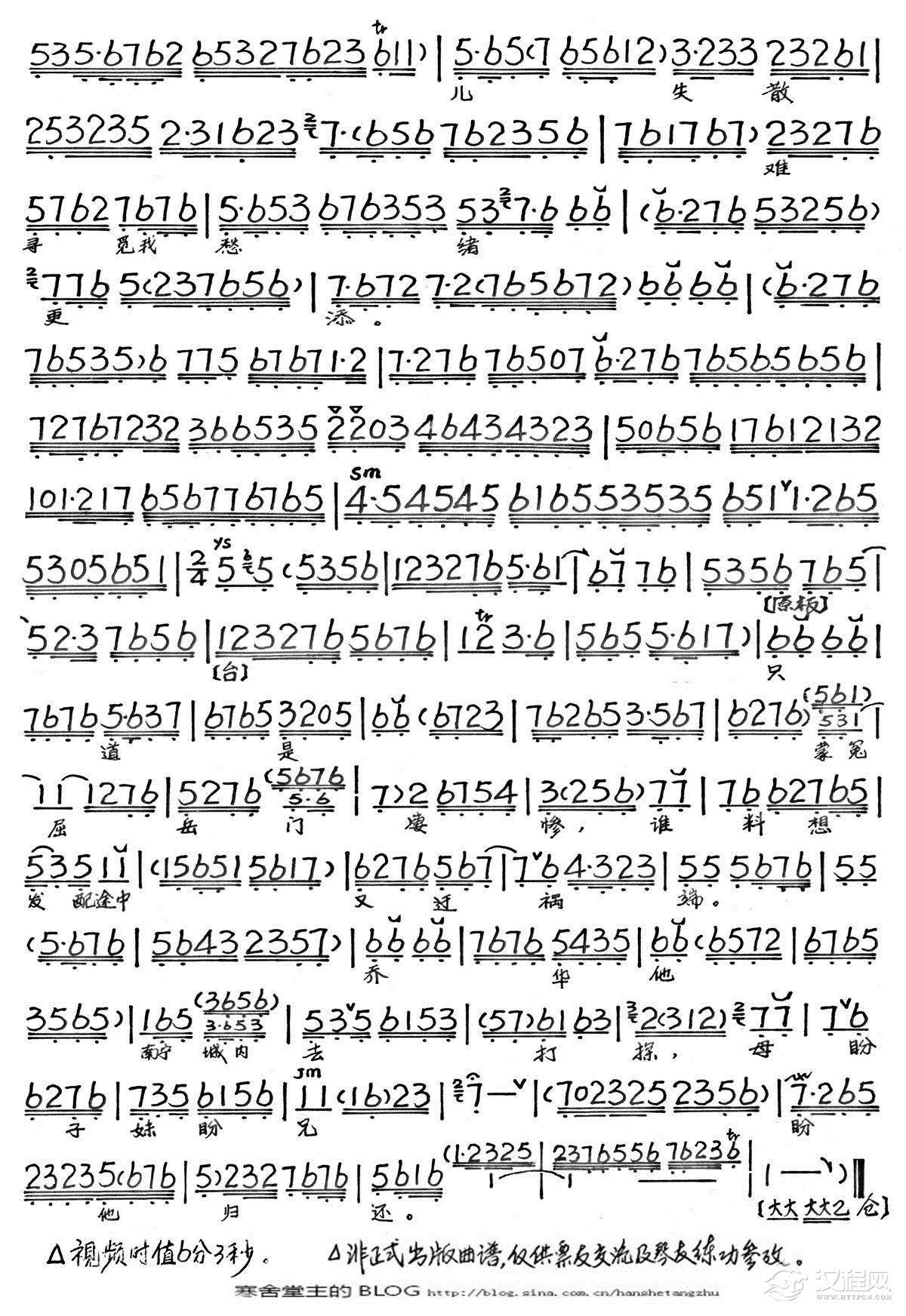 戏曲曲谱更鼓鸣寒梆响令人心颤(《岳飞夫人》李淑贞唱段、琴谱)