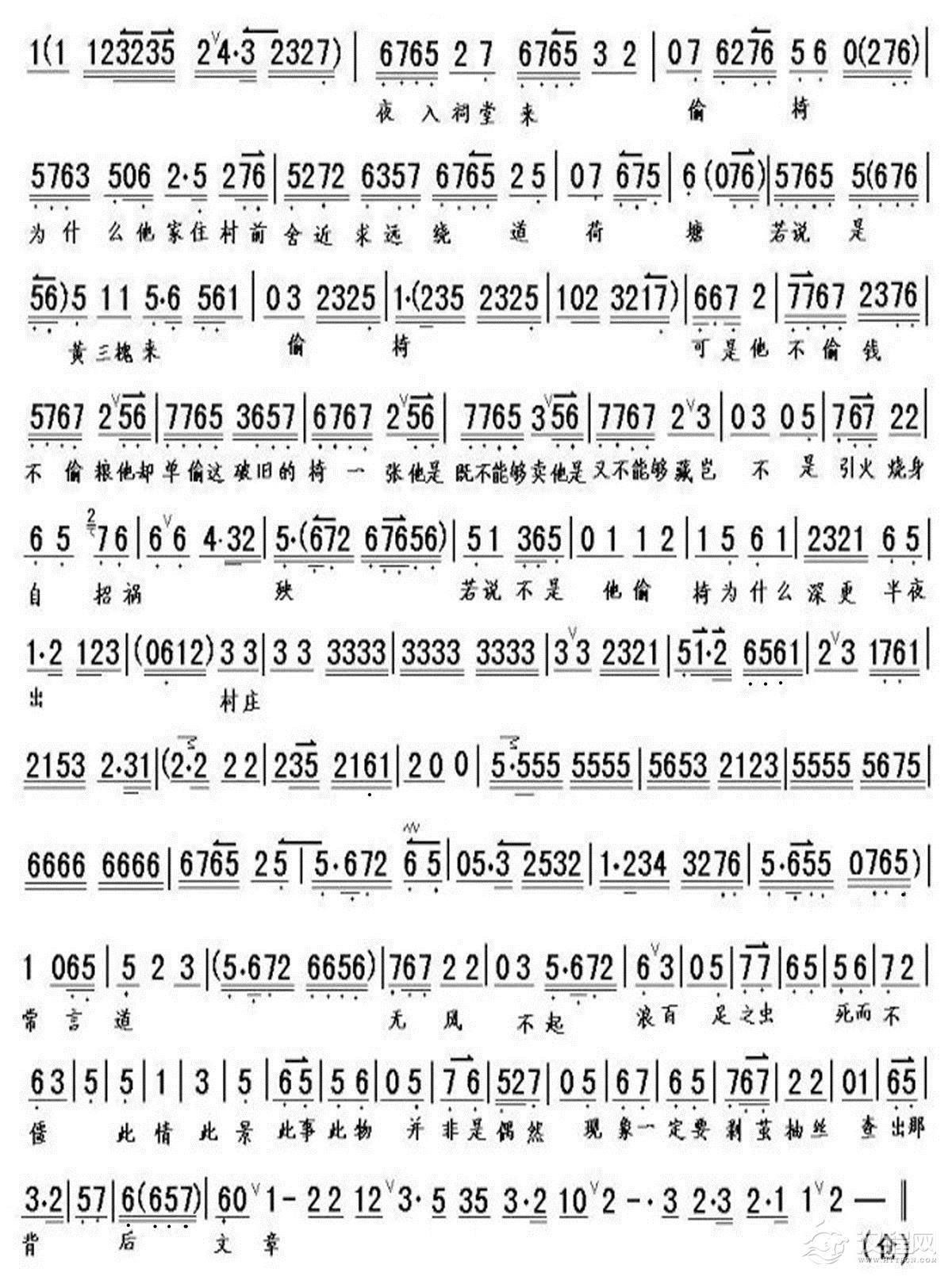 戏曲曲谱樵楼上打三更月明风静(《红线盗盒》选段、琴谱)
