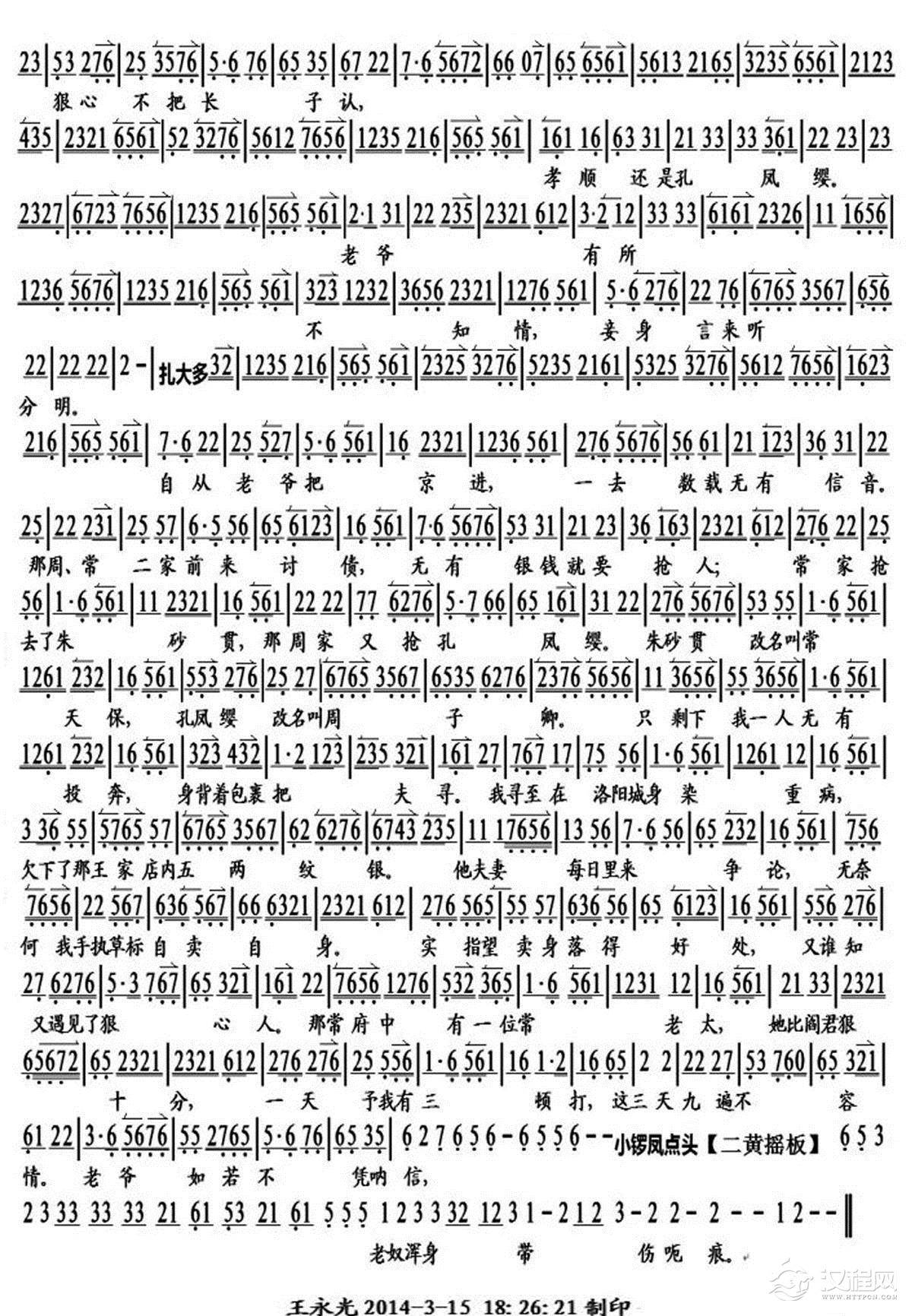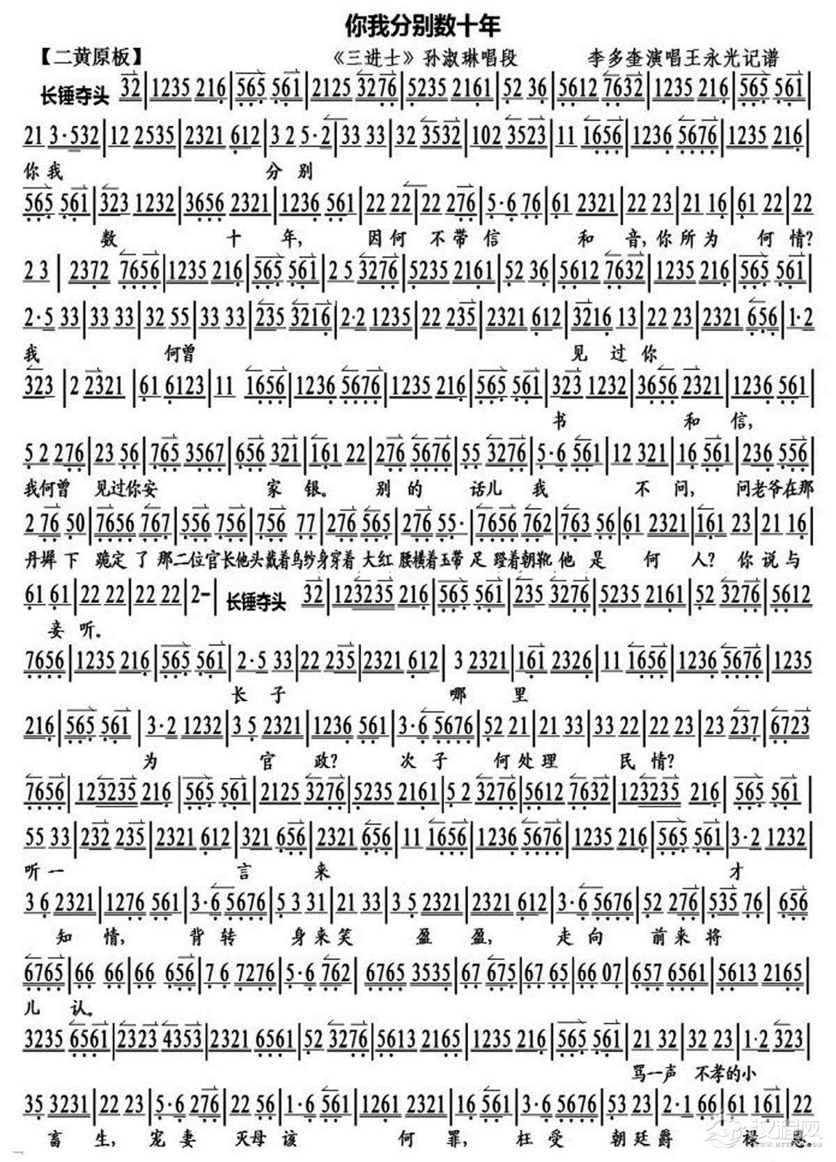 戏曲曲谱更鼓鸣寒梆响令人心颤(《岳飞夫人》李淑贞唱段、琴谱)