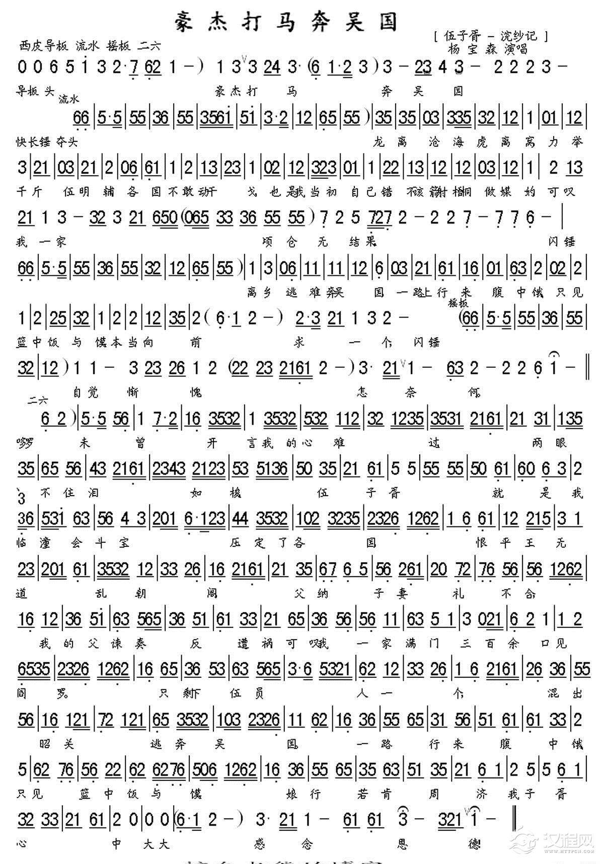 戏曲曲谱姜子牙无事隐钓溪(《伍子胥·鱼肠剑》选段、琴谱)
