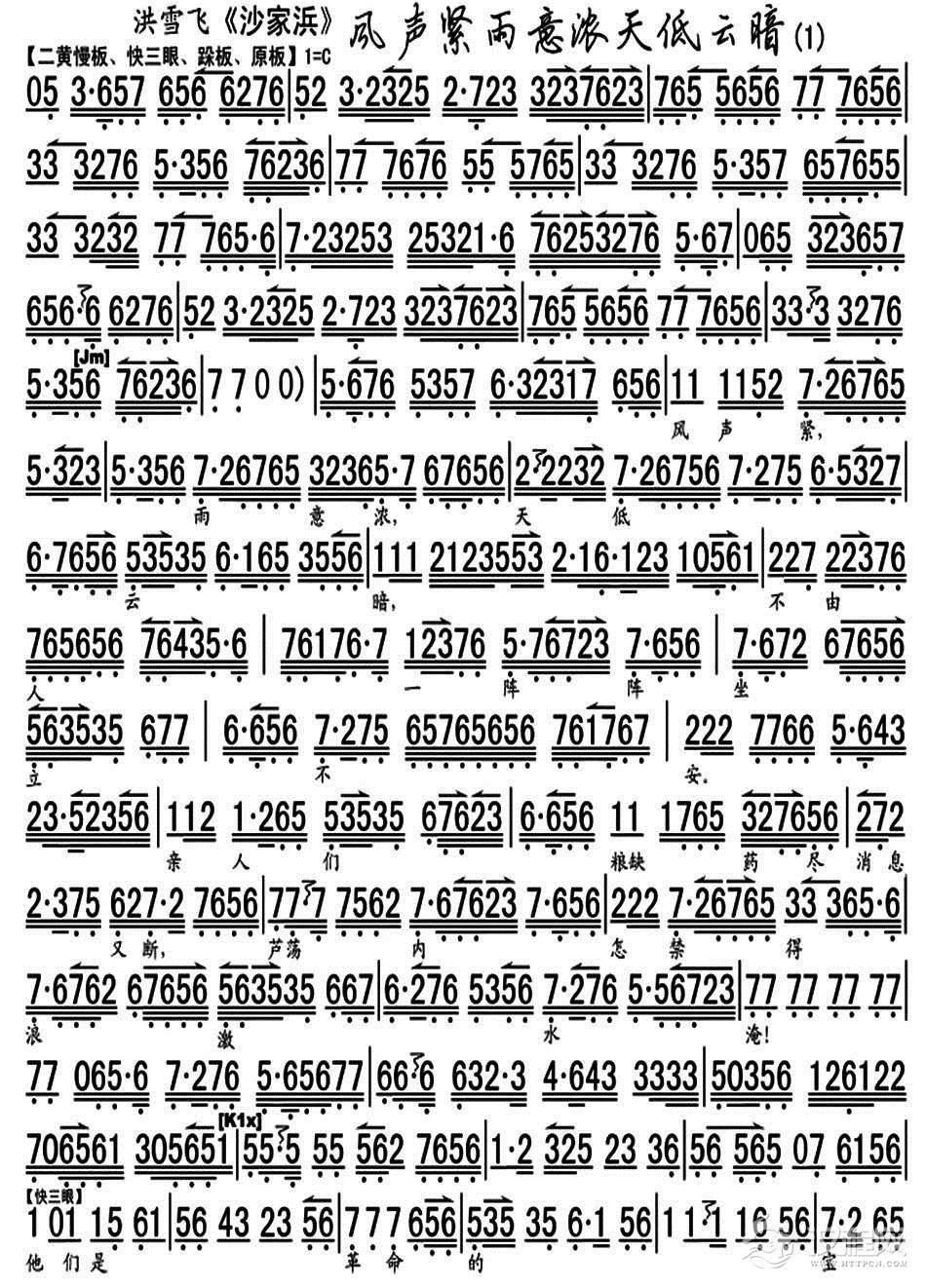 戏曲曲谱手抚琴儿心悲惨
