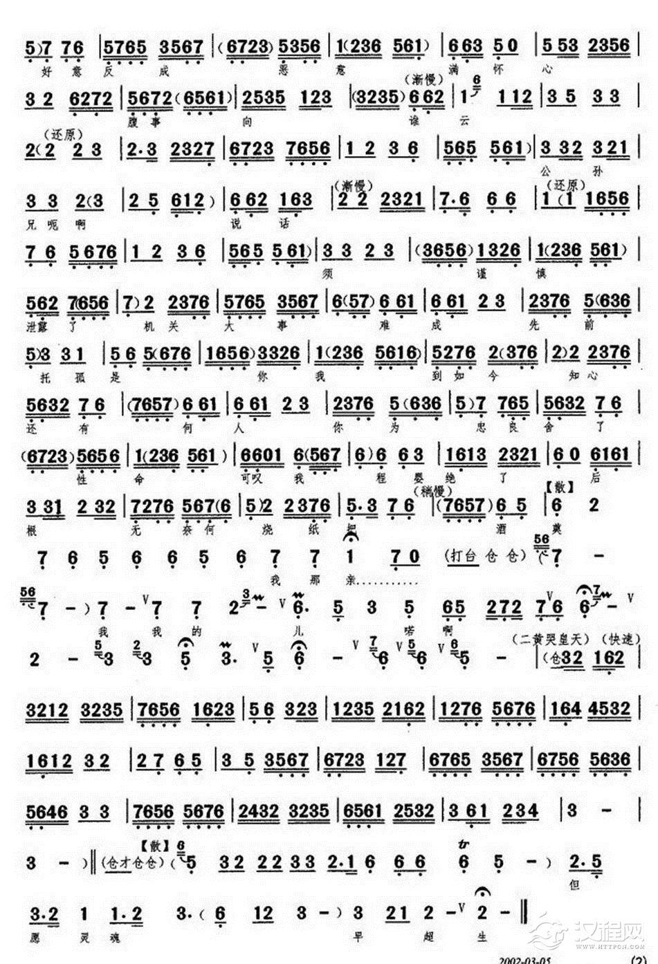 戏曲曲谱承畴儿为国家松山丧命(《洪母骂畴》选段、琴谱)