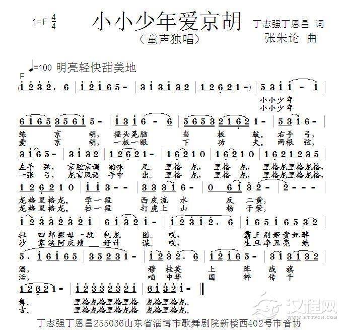 曲谱大全小小少年爱京胡(丁恩昌词 李华野曲)