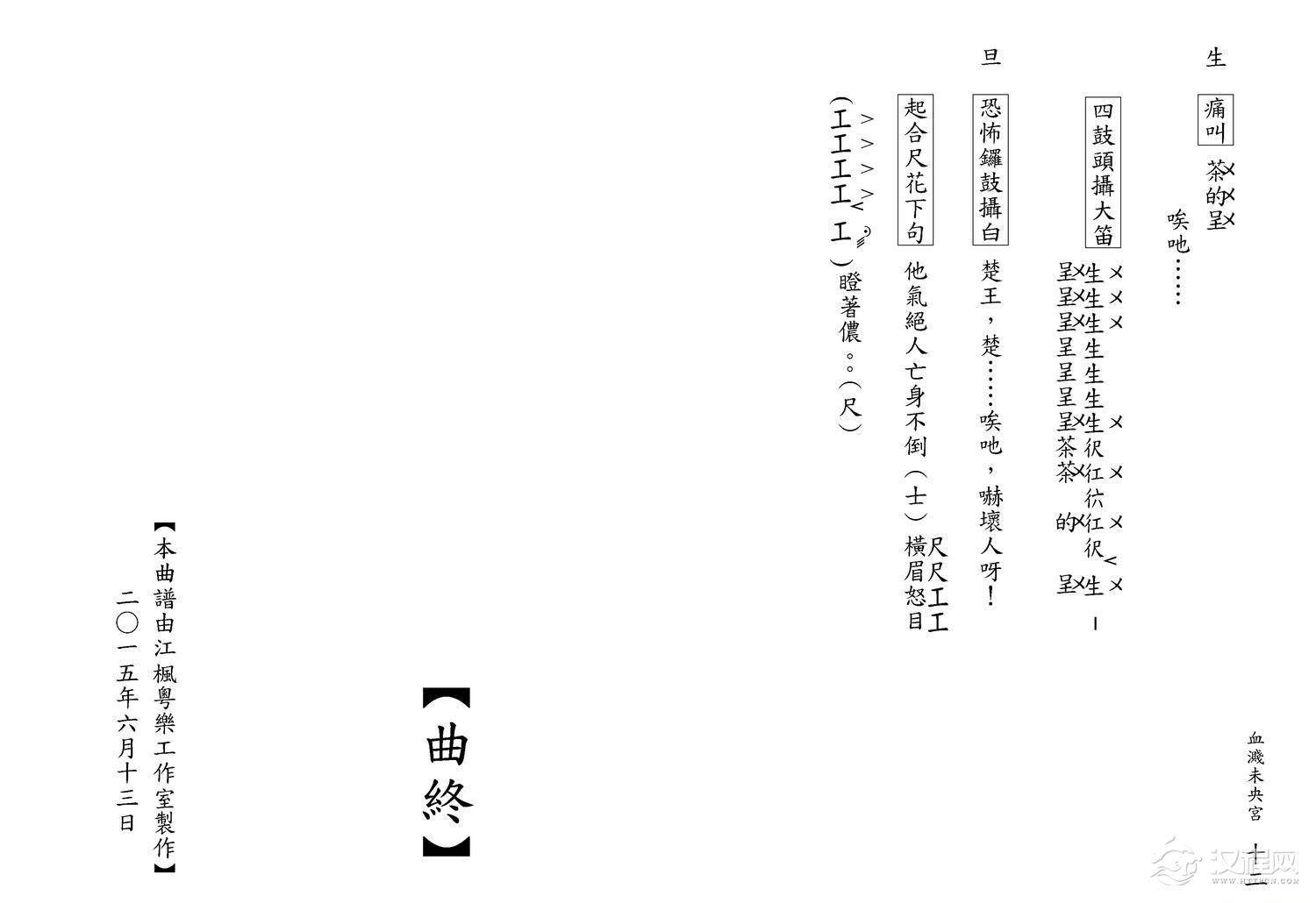 戏曲曲谱[粤曲]虎門別妻(工尺谱)