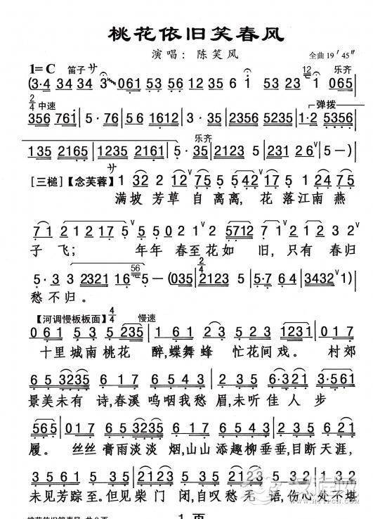戏曲曲谱[粤曲]祖国的好山河寸土不让(工尺谱)