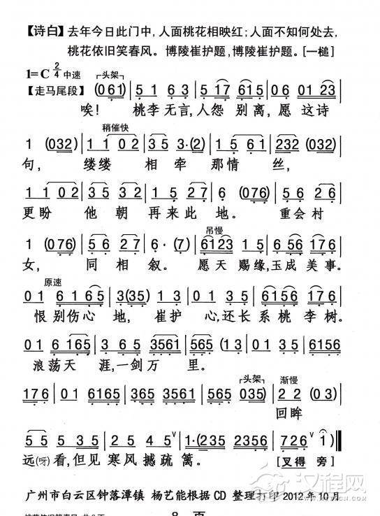 戏曲曲谱[粤曲]花田错会(工尺谱)