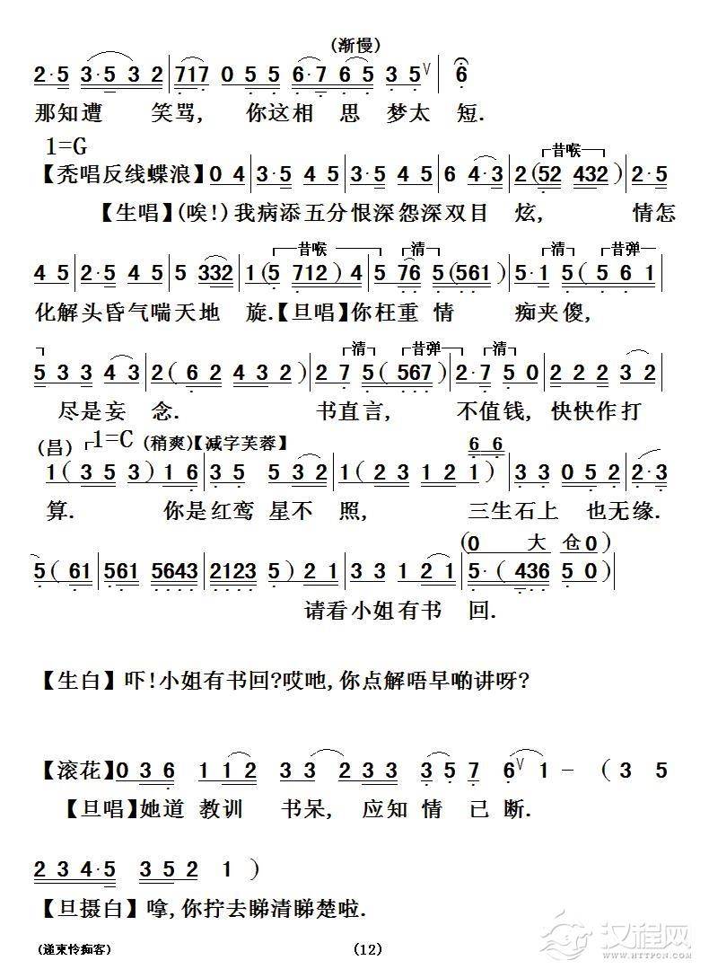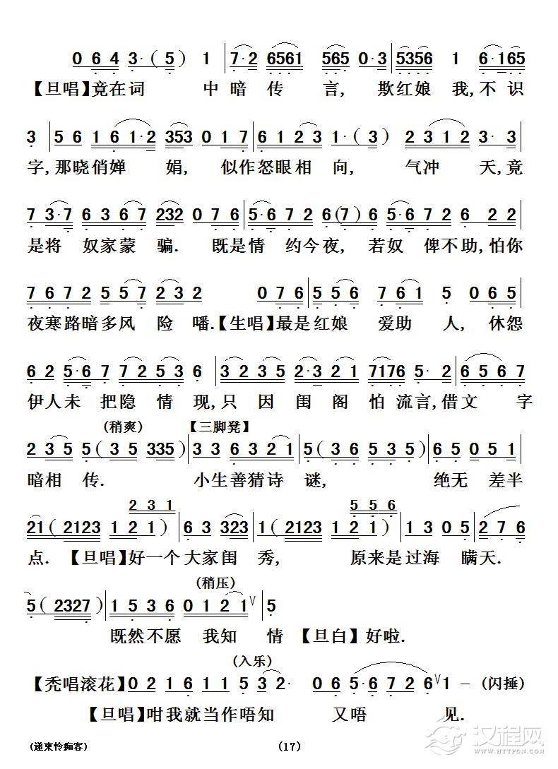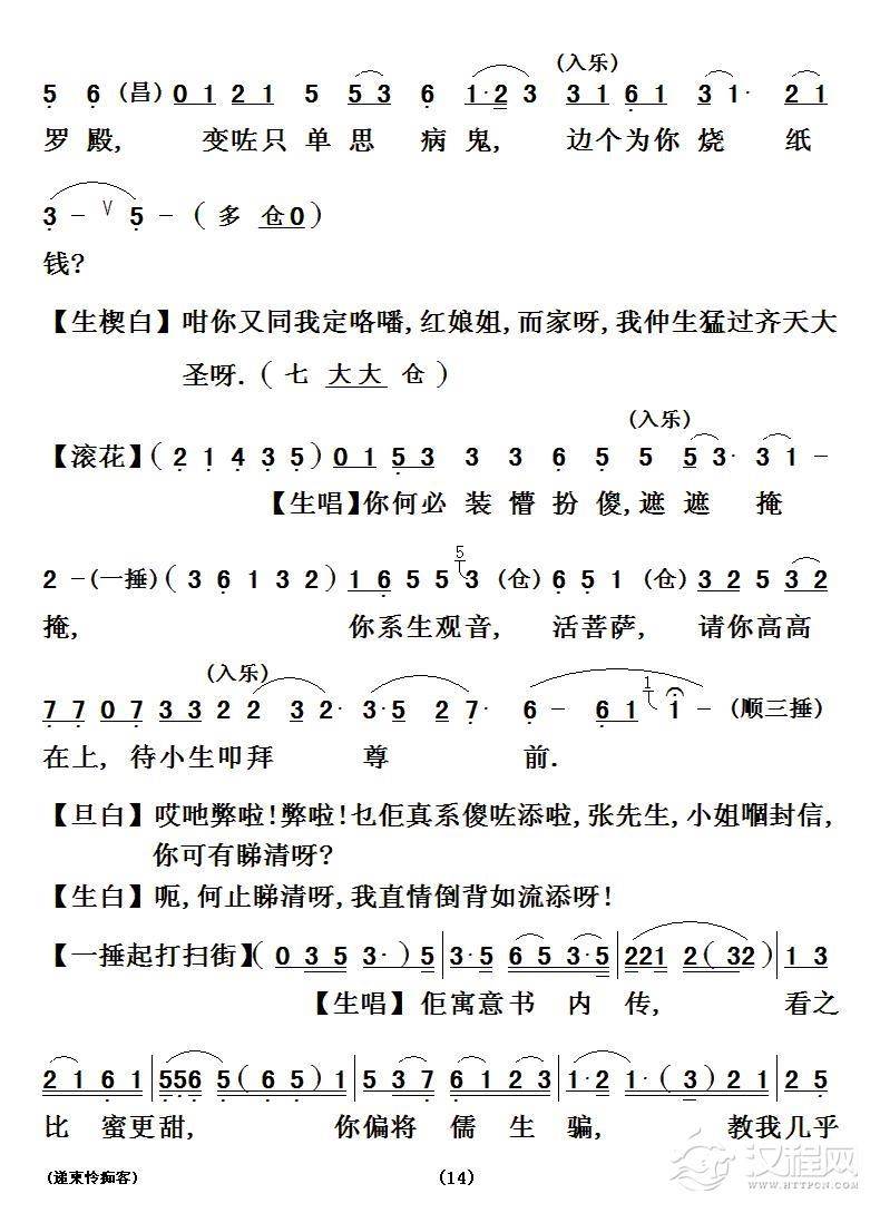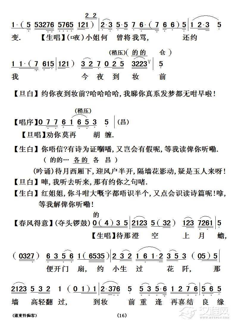 戏曲曲谱[粤曲]花田错会(工尺谱)