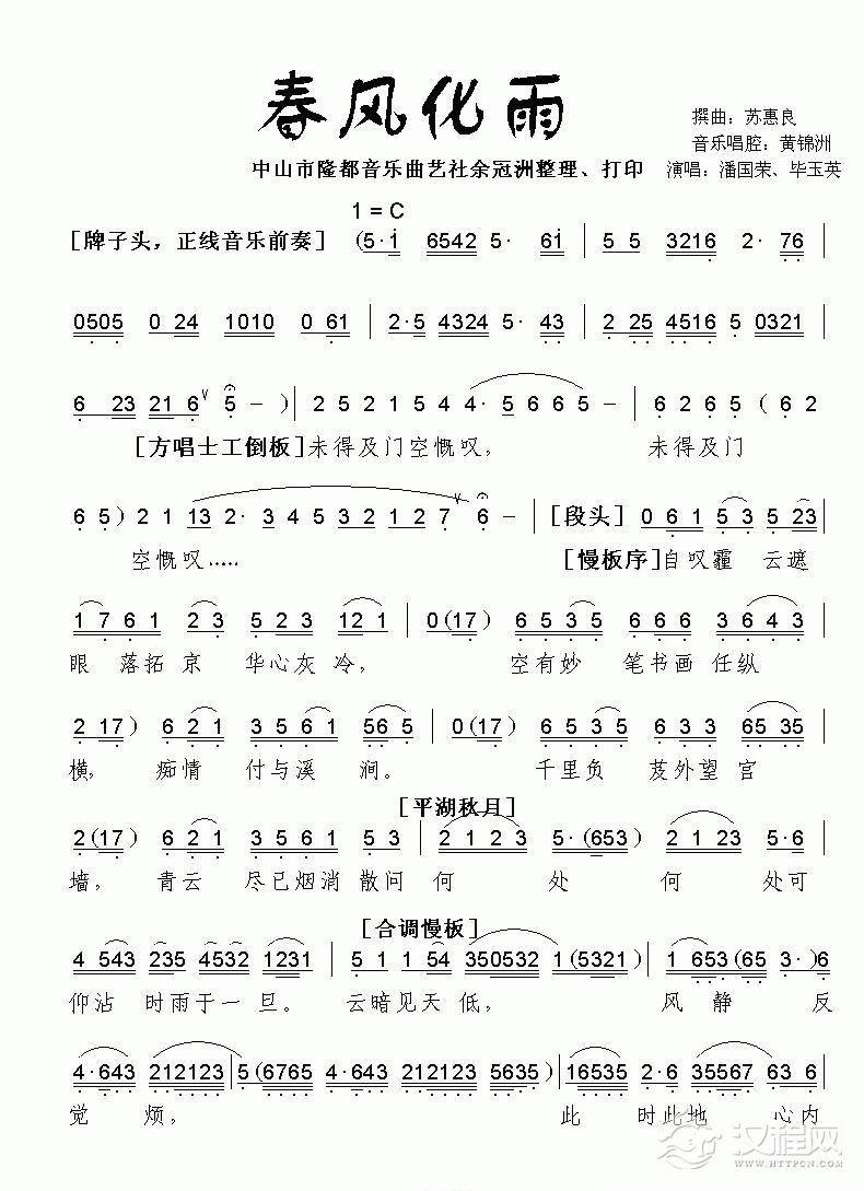戏曲曲谱[粤曲]风流梦(工尺谱)