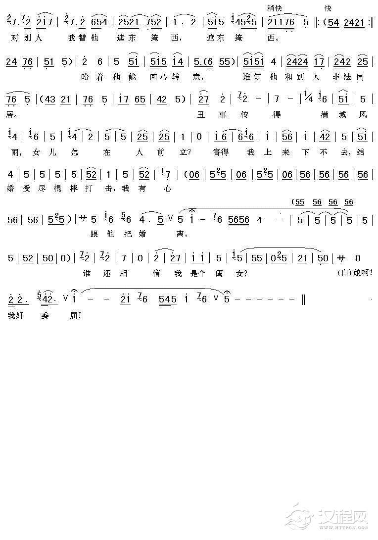 戏曲曲谱[眉户]吕家女在小房心中惆怅(《三回头》吕荣儿唱段)