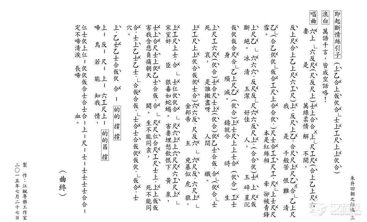 戏曲曲谱[粤曲]北地离歌(工尺谱)