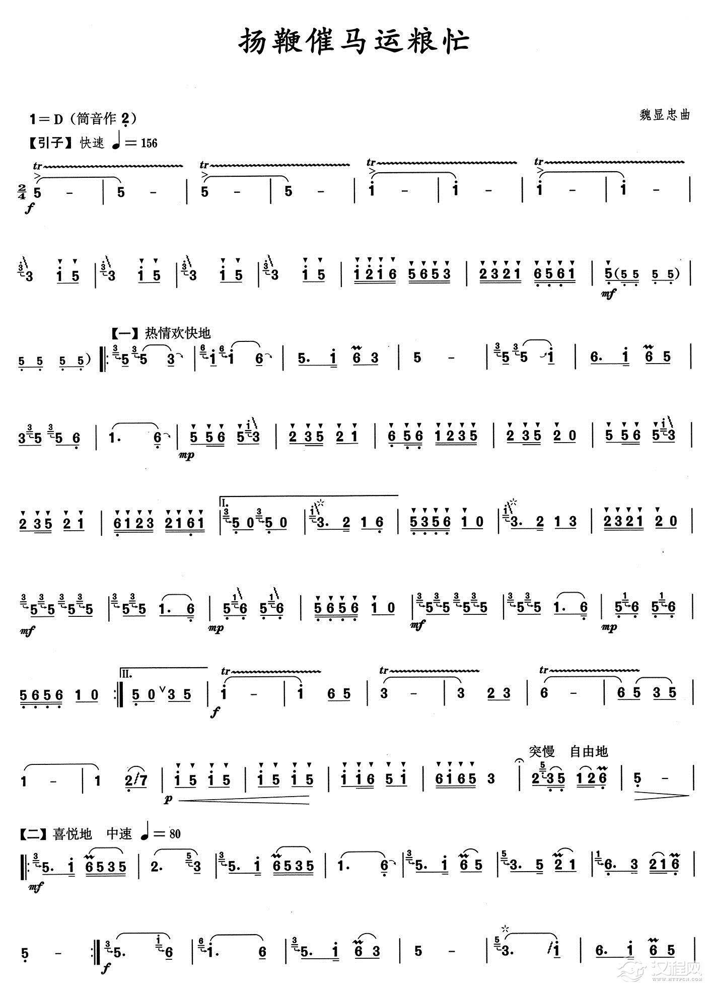 曲谱大全杨鞭催马运粮忙(中胡与笛子主旋合成谱)