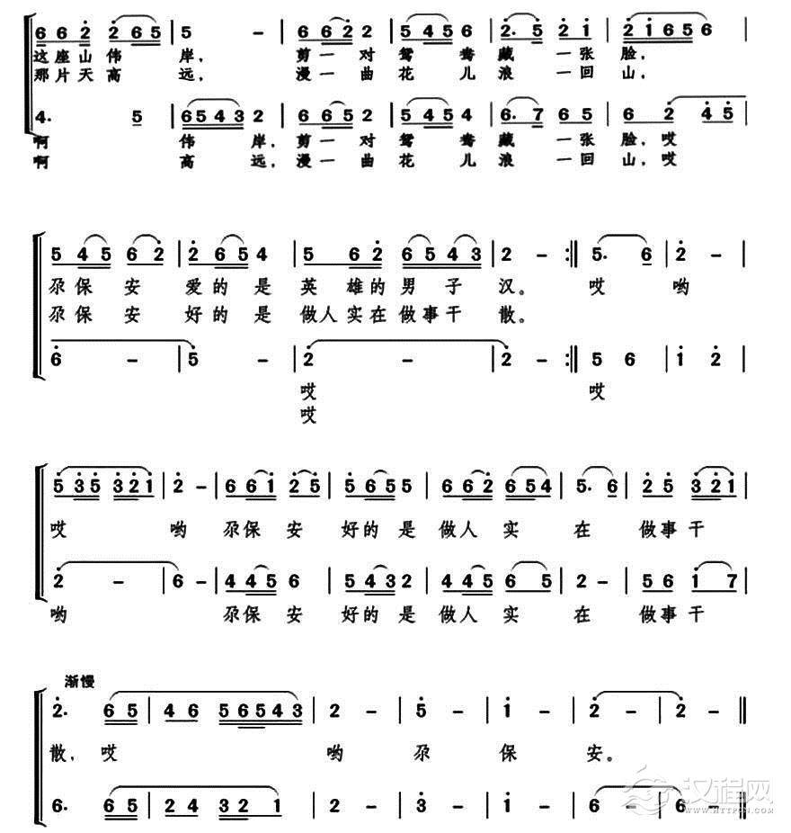 戏曲曲谱想延安,唱延安