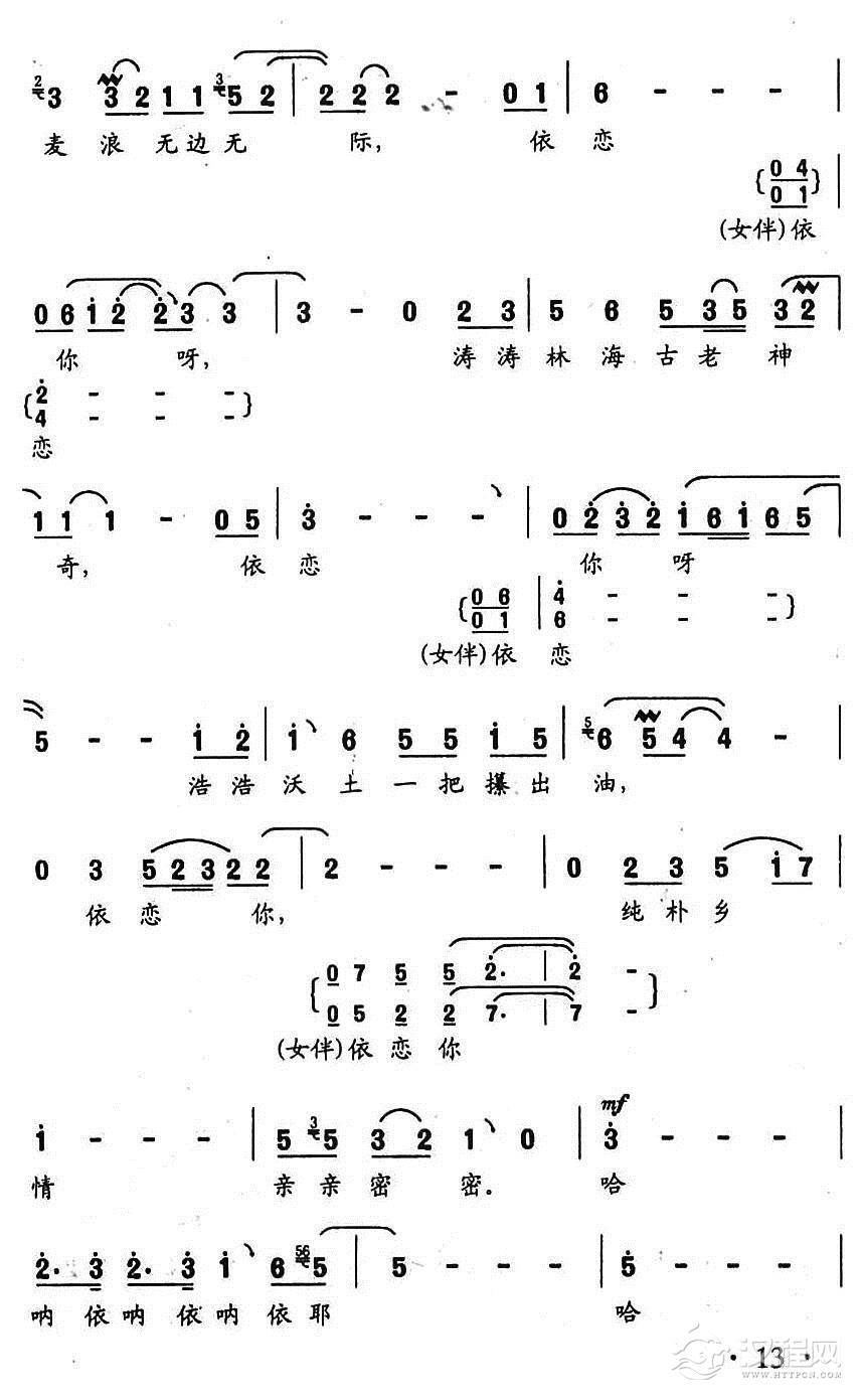 戏曲曲谱赞歌来自我家乡